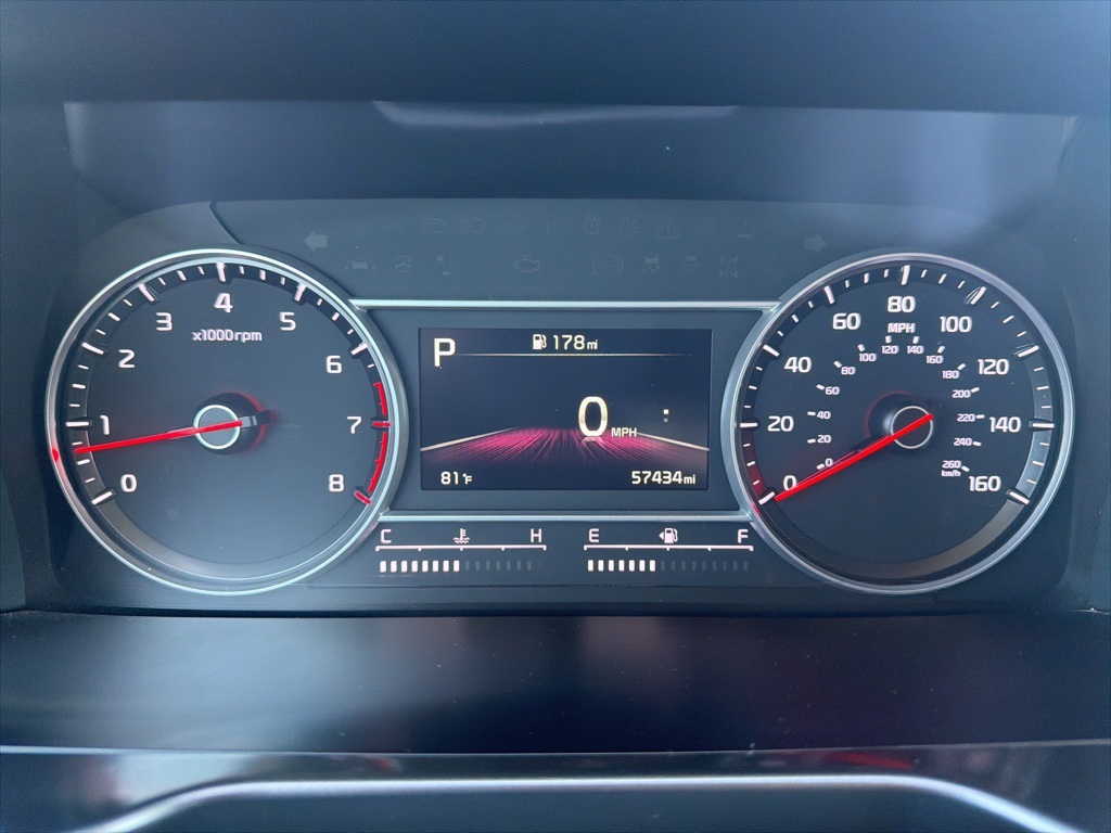 al front impact airbags, Dual front side impact airbags, Electronic Stability Control, Emergency communication system: UVO Link, Exterior Parking Camera Rear, Four wheel independent suspension, Front anti-roll bar, Front Bucket Seats, Front Center Armrest, Front dual zone A/C, Front reading lights, Fully automatic headlights, Heated door mirrors, Heated Front Bucket Seats, Heated front seats, Illuminated entry, Knee airbag, Leather Shift Knob, Leather steering wheel, Low tire pressure warning, Navigation System, Occupant sensing airbag, Outside temperature display, Overhead airbag, Overhead console, Panic alarm, Passenger door bin, Passenger vanity mirror, Power door mirrors, Power driver seat, Power steering, Power windows, Radio data system, Radio: AM/FM Audio System, Rear air conditioning, Rear anti-roll bar, Rear reading lights, Rear seat center armrest, Rear window defroster, Rear window wiper, Remote keyless entry, Roof rack: rails only, Security system, Smart Key w/ Push Button and Remote Start, Speed control, Speed-sensing steering, Split folding rear seat, Spoiler, Steering wheel mounted audio controls, SynTex Artificial Leather Seat Trim, Tachometer, Telescoping steering wheel, Tilt steering wheel, Traction control, Trip computer, Turn signal indicator mirrors, Variably intermittent wipers, Wheel Locks, Wheels: 7.5J x 18" Machine-Finished Alloy.