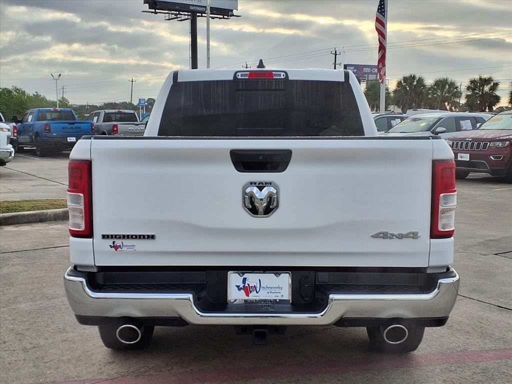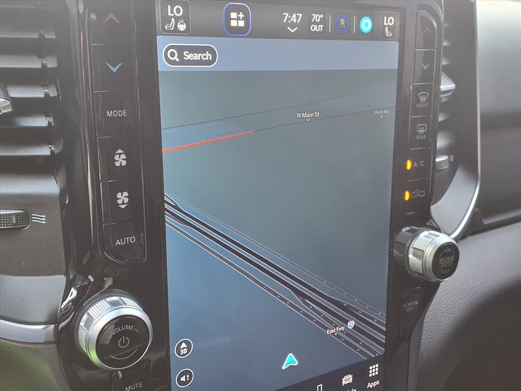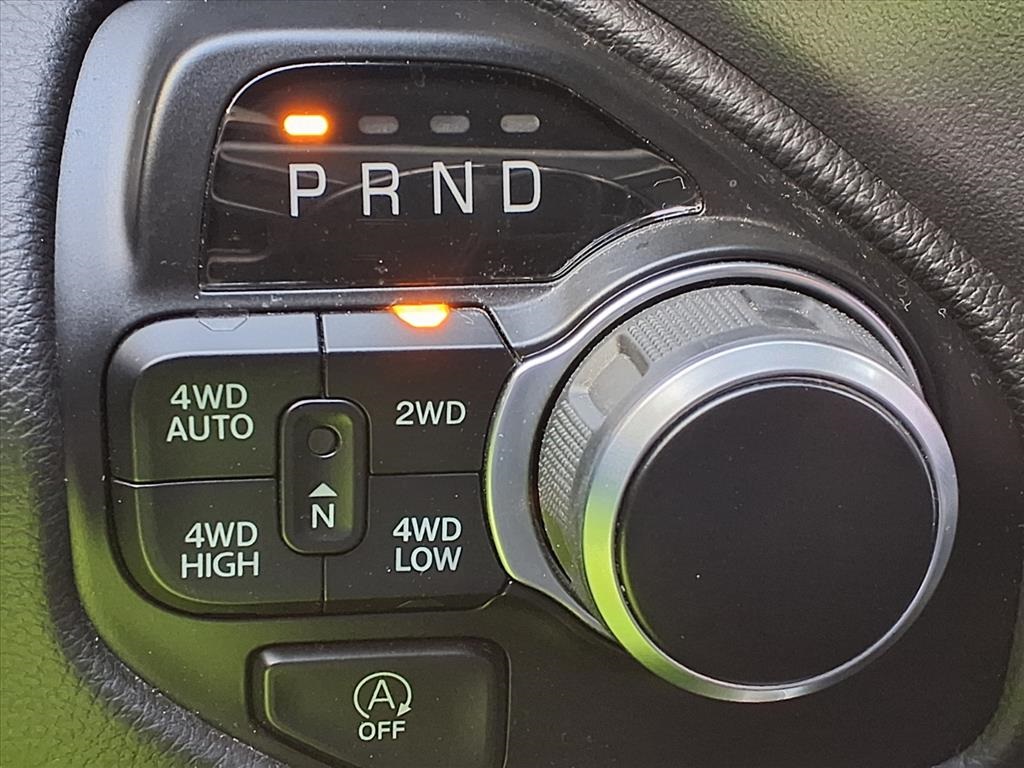 to-Dimming Exterior Driver Mirror, Auto-Dimming Rear-View Mirror, Black Premium Power Mirrors, Class IV Receiver Hitch, Cluster 7.0" TFT Color Display, Connected Travel & Traffic Services, Connectivity - US/Canada, Convex Wide-Angle Exterior Mirror Insert, Exterior Mirrors Courtesy Lamps, Exterior Mirrors w/Heating Element, Exterior Mirrors w/Supplemental Signals, For Details, Visit DriveUconnect.com, For More Info, Call 800-643-2112, Front Fog Lamps, Global Telematics Box Module (TBM), Glove Box Lamp, Google Android Auto, GPS Navigation, HD Radio, Heated Front Seats, Heated Steering Wheel, Integrated Voice Command w/Bluetooth, LED Footwell Lighting, Media Hub w/2 Charge Only USBs, ParkSense Front/Rear Park Assist w/Stop, Power 2-Way Driver Lumbar Adjust, Power 8-Way Driver Seat, Power Adjustable Pedals, Power-Folding Mirrors, Radio: Uconnect 5 Nav w/12.0" Display, Rear Dome w/On/Off Switch Lamp, Rear Power Sliding Window, Rear Window Defroster, Remote Start System, Security Alarm, SiriusXM Radio Service, SiriusXM Satellite Radio, SiriusXM w/360L, Sun Visors w/Illuminated Vanity Mirrors, Universal Garage Door Opener, and USB Host Flip), Quick Order Package 27Z Big Horn (Big Horn Badge), 3 Rear Seat Head Restraints, 3.21 Rear Axle Ratio, 4 Way Front Headrests, 4-Wheel Disc Brakes, 48V Belt Starter Generator, 6 Speakers, ABS brakes, Air Conditioning, Alloy wheels, AM/FM radio, Brake assist, Bumpers: chrome, Cloth Bench Seat, Compass, Delay-off headlights, Driver door bin, Dual front impact airbags, Dual front side impact airbags, Electronic Stability Control, Emergency communication system: RAM Connect, Front anti-roll bar, Front Center Armrest w/Storage, Front License Plate Bracket, Front reading lights, Front Seat Back Map Pockets, Front wheel independent suspension, Fully automatic headlights, Heated door mirrors, Illuminated entry, Leather steering wheel, Low tire pressure warning, Manufacturer's Statement of Origin, Occupant sensing airbag, Outside temperature display, Overhead airbag, Overhead console, Panic alarm, ParkView Rear Back-Up Camera, Passenger door bin, Passenger vanity mirror, Power door mirrors, Power steering, Power windows, Radio data system, Radio: Uconnect 3 w/5" Display, RAM Grille Badge - Chrome, Rear 60/40 Folding Seat, Rear anti-roll bar, Rear seat center armrest, Rear step bumper, Remote keyless entry, Speed control, Split folding rear seat, Steering wheel mounted audio controls, Tachometer, Telescoping steering wheel, Tilt steering wheel, Traction control, Trip computer, Variably intermittent wipers, Voltmeter, and Wheels: 18" x 8" Cast-Aluminum PainteD. Recent Arrival!
