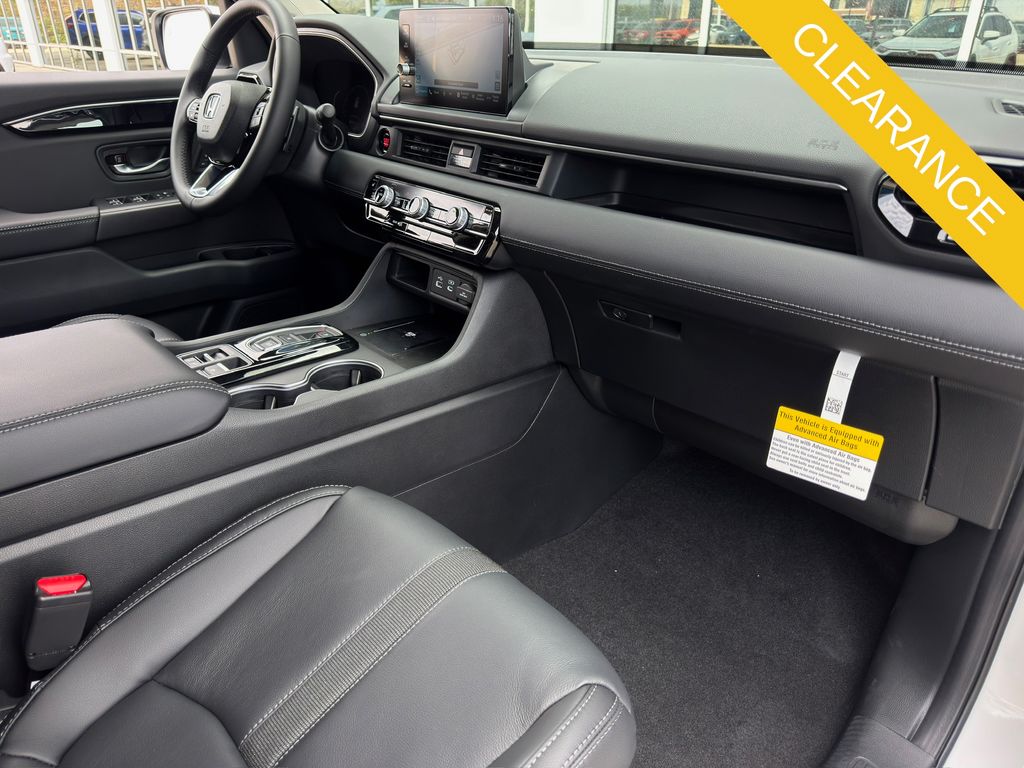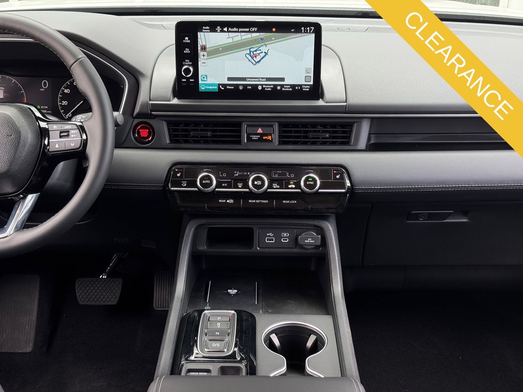 , Apple CarPlay/Android Auto, Auto High-beam Headlights, Auto-dimming Rear-View mirror, Automatic temperature control, Blind Spot Information (BSI) System warning, Bose Premium Sound System, Brake assist, Bumpers: body-color, Compass, Delay-off headlights, Driver door bin, Driver vanity mirror, Dual front impact airbags, Dual front side impact airbags, Electronic Stability Control, Emergency communication system: HondaLink, Exterior Parking Camera Rear, Four wheel independent suspension, Front anti-roll bar, Front Bucket Seats, Front Center Armrest, Front dual zone A/C, Front fog lights, Front reading lights, Fully automatic headlights, Garage door transmitter: HomeLink, Heated door mirrors, Heated Front Bucket Seats, Heated front seats, Honda Satellite-Linked Navigation System, HondaLink Subscription Services, Illuminated entry, Knee airbag, Lane departure: Lane Keeping Assist System (LKAS) active, Leather Seat Trim, Low tire pressure warning, Memory seat, Navigation system: Honda Satellite-Linked Navigation System, Occupant sensing airbag, Outside temperature display, Overhead airbag, Overhead console, Panic alarm, Passenger door bin, Passenger vanity mirror, Power door mirrors, Power driver seat, Power Liftgate, Power moonroof, Power passenger seat, Power steering, Power windows, Radio data system, Rear air conditioning, Rear anti-roll bar, Rear reading lights, Rear seat center armrest, Rear window defroster, Rear window wiper, Reclining 3rd row seat, Remote keyless entry, Security system, SiriusXM, Speed control, Speed-sensing steering, Speed-Sensitive Wipers, Split folding rear seat, Spoiler, Steering wheel mounted audio controls, Tachometer, Telescoping steering wheel, Tilt steering wheel, Traction control, Trip computer, Turn signal indicator mirrors, Variably intermittent wipers, Wheels: 20" Shark Gray Machine Face with Black Lug Nuts.