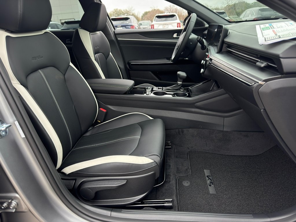 lights, Driver door bin, Driver vanity mirror, Dual front impact airbags, Dual front side impact airbags, Electronic Stability Control, Emergency communication system: Kia Connect (includes 1 year free trial), Four wheel independent suspension, Front anti-roll bar, Front Bucket Seats, Front Center Armrest, Front dual zone A/C, Front fog lights, Front reading lights, Fully automatic headlights, Heated door mirrors, Heated Front Bucket Seats, Heated front seats, Heated steering wheel, Illuminated entry, Knee airbag, Leather Shift Knob, Leather steering wheel, Low tire pressure warning, Navigation System, Occupant sensing airbag, Outside temperature display, Overhead airbag, Overhead console, Panic alarm, Passenger door bin, Passenger vanity mirror, Power door mirrors, Power driver seat, Power steering, Power windows, Radio data system, Radio: AM/FM Audio System, Rear anti-roll bar, Rear seat center armrest, Rear side impact airbag, Rear window defroster, Remote keyless entry, Security system, Speed control, Speed-sensing steering, Split folding rear seat, Sport steering wheel, Steering wheel mounted audio controls, Tachometer, Telescoping steering wheel, Tilt steering wheel, Traction control, Trip computer, Turn signal indicator mirrors, Variably intermittent wipers, Wheels: 18" x 7.5J Gloss Black Machined Finish Alloy.