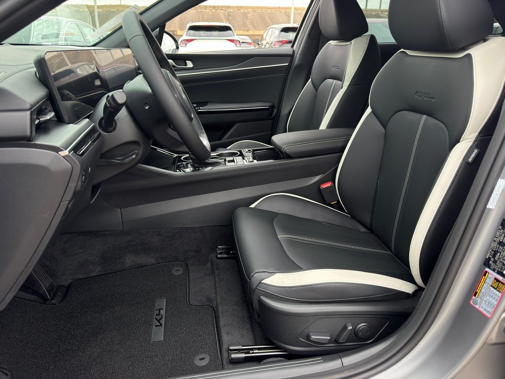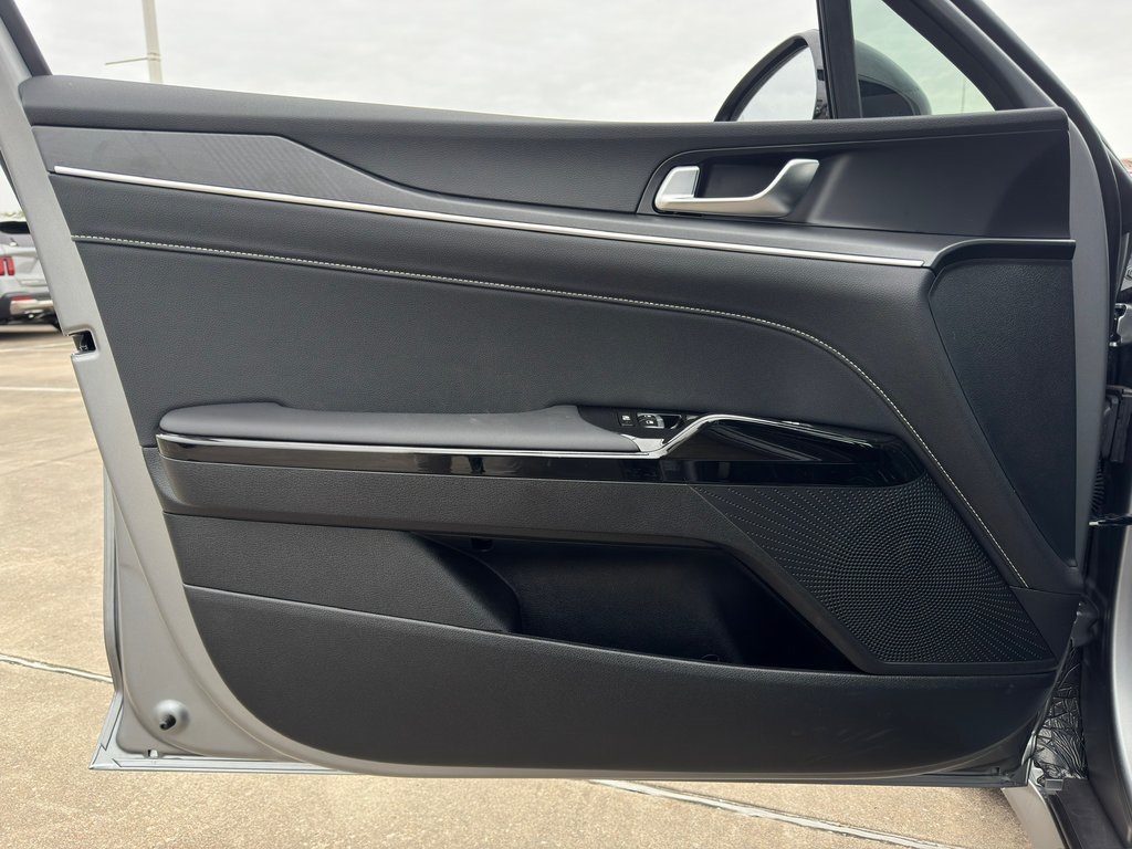 4-Wheel Disc Brakes, 6 Speakers, ABS brakes, Air Conditioning, Alloy wheels, AM/FM radio: SiriusXM, Auto High-beam Headlights, Automatic temperature control, Brake assist, Bumpers: body-color, Delay-off headlights, Driver door bin, Driver vanity mirror, Dual front impact airbags, Dual front side impact airbags, Electronic Stability Control, Emergency communication system: Kia Connect (includes 1 year free trial), Four wheel independent suspension, Front anti-roll bar, Front Bucket Seats, Front Center Armrest, Front dual zone A/C, Front fog lights, Front reading lights, Fully automatic headlights, Heated door mirrors, Heated Front Bucket Seats, Heated front seats, Heated steering wheel, Illuminated entry, Knee airbag, Leather Shift Knob, Leather steering wheel, Low tire pressure warning, Navigation System, Occupant sensing airbag, Outside temperature display, Overhead airbag, Overhead console, Panic alarm, Passenger door bin, Passenger vanity mirror, Power door mirrors, Power driver seat, Power steering, Power windows, Radio data system, Radio: AM/FM Audio System, Rear anti-roll bar, Rear seat center armrest, Rear side impact airbag, Rear window defroster, Remote keyless entry, Security system, Speed control, Speed-sensing steering, Split folding rear seat, Sport steering wheel, Steering wheel mounted audio controls, Tachometer, Telescoping steering wheel, Tilt steering wheel, Traction control, Trip computer, Turn signal indicator mirrors, Variably intermittent wipers, and Wheels: 18" x 7.5J Gloss Black Machined Finish Alloy.