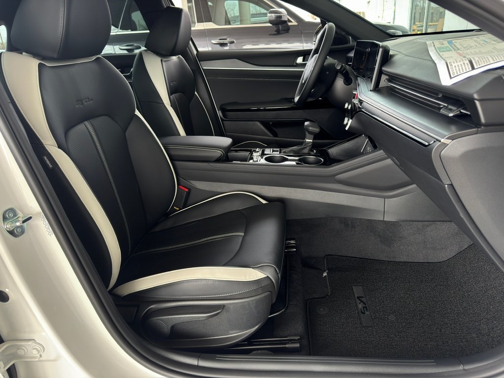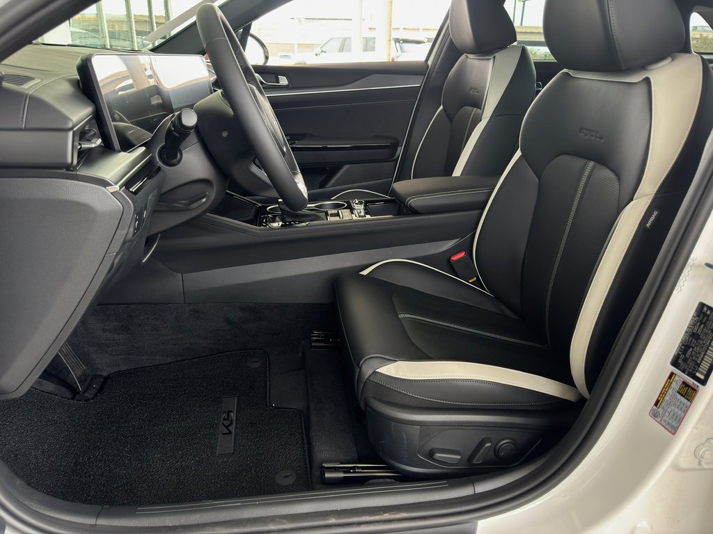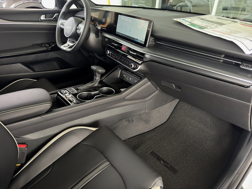 lights, Driver door bin, Driver vanity mirror, Dual front impact airbags, Dual front side impact airbags, Electronic Stability Control, Emergency communication system: Kia Connect (includes 1 year free trial), Four wheel independent suspension, Front anti-roll bar, Front Bucket Seats, Front Center Armrest, Front dual zone A/C, Front fog lights, Front reading lights, Fully automatic headlights, Heated door mirrors, Heated Front Bucket Seats, Heated front seats, Heated steering wheel, Illuminated entry, Knee airbag, Leather Shift Knob, Leather steering wheel, Low tire pressure warning, Navigation System, Occupant sensing airbag, Outside temperature display, Overhead airbag, Overhead console, Panic alarm, Passenger door bin, Passenger vanity mirror, Power door mirrors, Power driver seat, Power steering, Power windows, Radio data system, Radio: AM/FM Audio System, Rear anti-roll bar, Rear seat center armrest, Rear side impact airbag, Rear window defroster, Remote keyless entry, Security system, Speed control, Speed-sensing steering, Split folding rear seat, Sport steering wheel, Steering wheel mounted audio controls, Tachometer, Telescoping steering wheel, Tilt steering wheel, Traction control, Trip computer, Turn signal indicator mirrors, Variably intermittent wipers, Wheels: 18" x 7.5J Gloss Black Machined Finish Alloy.