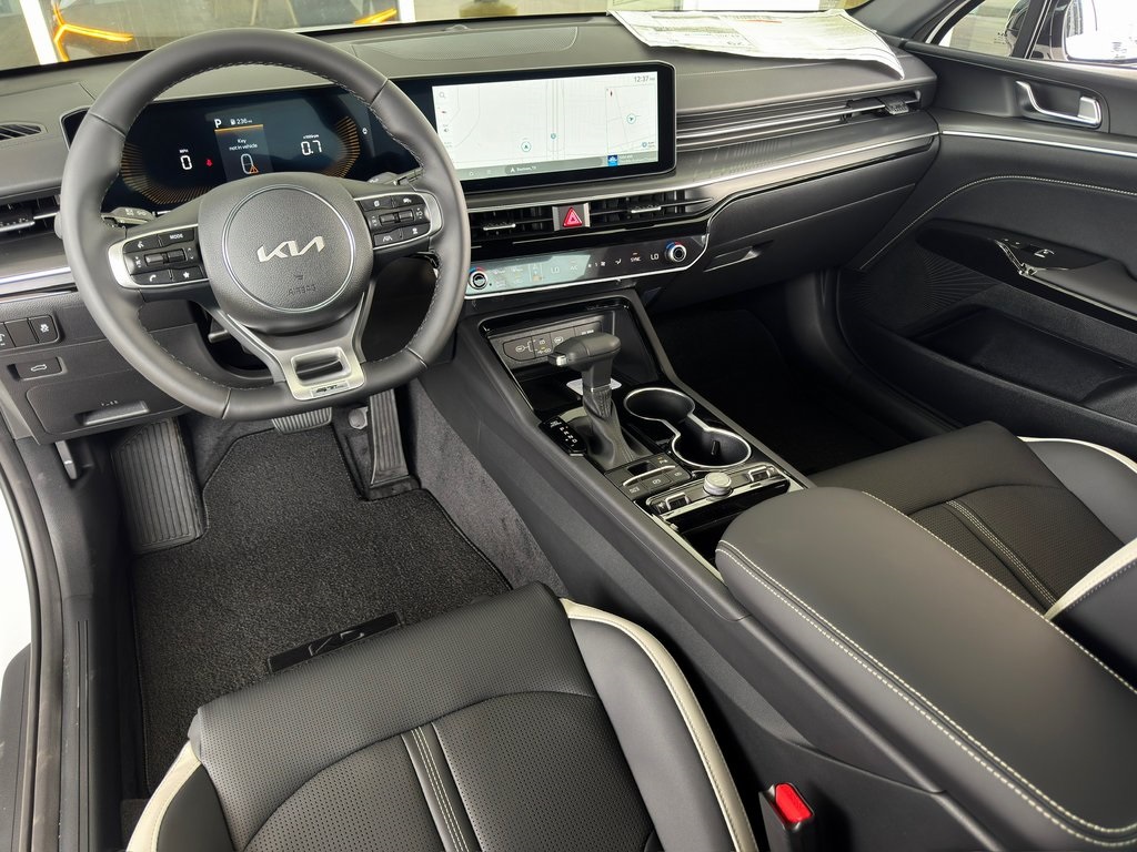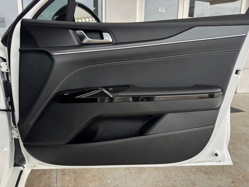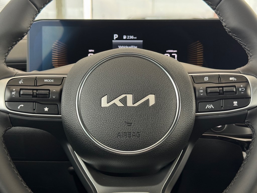 4-Wheel Disc Brakes, 6 Speakers, ABS brakes, Air Conditioning, Alloy wheels, AM/FM radio: SiriusXM, Auto High-beam Headlights, Automatic temperature control, Brake assist, Bumpers: body-color, Delay-off headlights, Driver door bin, Driver vanity mirror, Dual front impact airbags, Dual front side impact airbags, Electronic Stability Control, Emergency communication system: Kia Connect (includes 1 year free trial), Four wheel independent suspension, Front anti-roll bar, Front Bucket Seats, Front Center Armrest, Front dual zone A/C, Front fog lights, Front reading lights, Fully automatic headlights, Heated door mirrors, Heated Front Bucket Seats, Heated front seats, Heated steering wheel, Illuminated entry, Knee airbag, Leather Shift Knob, Leather steering wheel, Low tire pressure warning, Navigation System, Occupant sensing airbag, Outside temperature display, Overhead airbag, Overhead console, Panic alarm, Passenger door bin, Passenger vanity mirror, Power door mirrors, Power driver seat, Power steering, Power windows, Radio data system, Radio: AM/FM Audio System, Rear anti-roll bar, Rear seat center armrest, Rear side impact airbag, Rear window defroster, Remote keyless entry, Security system, Speed control, Speed-sensing steering, Split folding rear seat, Sport steering wheel, Steering wheel mounted audio controls, Tachometer, Telescoping steering wheel, Tilt steering wheel, Traction control, Trip computer, Turn signal indicator mirrors, Variably intermittent wipers, and Wheels: 18" x 7.5J Gloss Black Machined Finish Alloy.