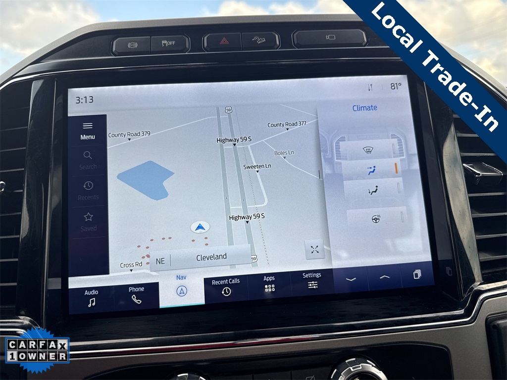 ge (Ambient Lighting - Fixed Color, Easy Entry®/Exit Memory Driver's Seat Feature, Intelligent Access w/Push-Button Start, LED Box Lighting, Memory Power-Adjustable Pedals, Power Heated/Ventilated Driver Seat w/Memory, Power Heated/Ventilated Passenger Seat, Power Telescoping/Tilt Steering Wheel/Column, PowerScope Trailer Tow Mirrors w/Memory, Remote Start System, Remote Tailgate Release, and Tailgate Step & Handle), Order Code 608A, 4WD, 10 Speakers, 4-Wheel Disc Brakes, 6" Angular Bright Polished Step Bar, ABS brakes, Adjustable pedals, Advanced Security Pack Inclination Sensor Removal, Air Conditioning, Alloy wheels, AM/FM radio: SiriusXM with 360L, Auto High-beam Headlights, Auto-dimming Rear-View mirror, Automatic temperature control, Brake assist, Bumpers: chrome, Compass, Delay-off headlights, Driver door bin, Driver vanity mirror, Dual front impact airbags, Dual front side impact airbags, Electronic Stability Control, Emergency communication system: SYNC 4 911 Assist, Engine Block Heater, Exterior Parking Camera Rear, Flow-Through Console, Front anti-roll bar, Front Bucket Seats, Front Center Armrest, Front dual zone A/C, Front fog lights, Front Leather Seating Surfaces 40/Console/40, Front reading lights, Fully automatic headlights, Heated door mirrors, Heated Steering Wheel, Illuminated entry, Leather steering wheel, Low tire pressure warning, Navigation system: Connected Navigation, Outside temperature display, Overhead airbag, Overhead console, Panic alarm, Passenger door bin, Passenger vanity mirror, Power door mirrors, Power driver seat, Power passenger seat, Power steering, Power windows, PowerScope Trailer Tow Mirrors w/Heat, Radio data system, Radio: B&O Sound System by Bang & Olufsen, Rain-Sensing Windshield Wipers, Rear CHMSL Camera, Rear Parking Sensors, Rear reading lights, Rear seat center armrest, Rear step bumper, Rear window defroster, Remote keyless entry, Security system, SiriusXM Radio w/360L, Speed control, Split folding rear seat, Steering wheel mounted audio controls, SYNC 4 w/Enhanced Voice Recognition, Tachometer, Telescoping steering wheel, Tilt steering wheel, Traction control, Trip computer, Turn signal indicator mirrors, Universal Garage Door Opener (UGDO), Upfitter Switches (6), Variably intermittent wipers, Wheels: 18" Bright Machined Cast Aluminum, and Wheels: 20" Bright Machined Cast Aluminum.