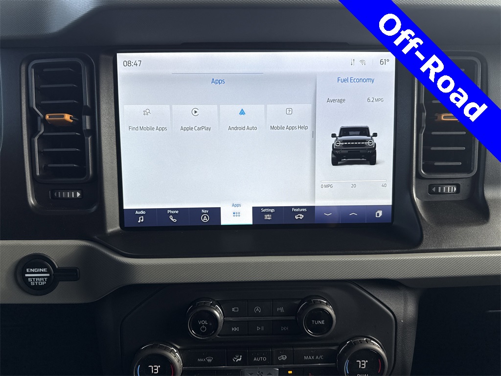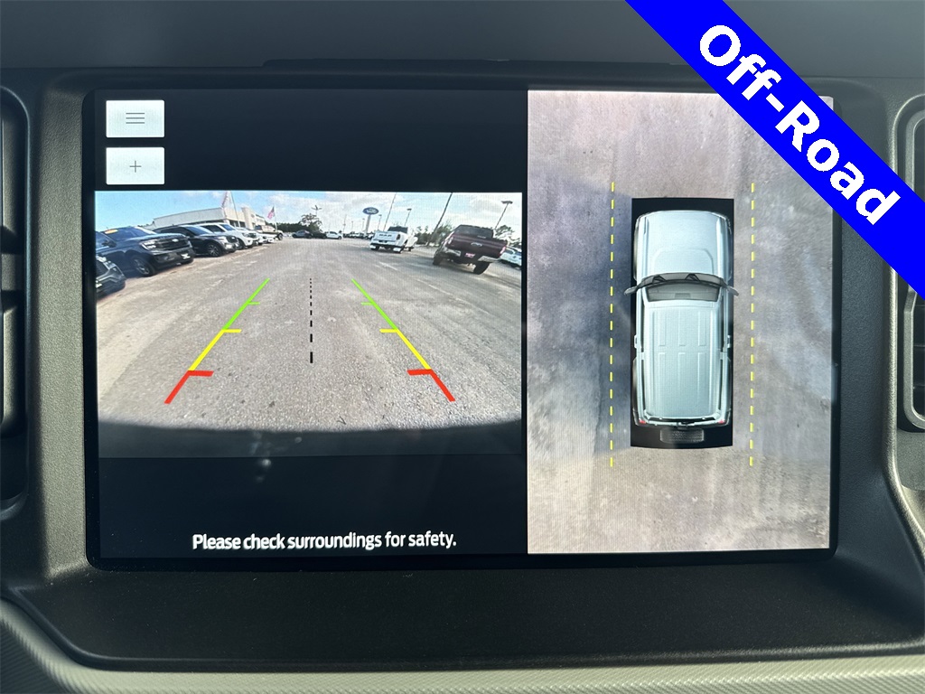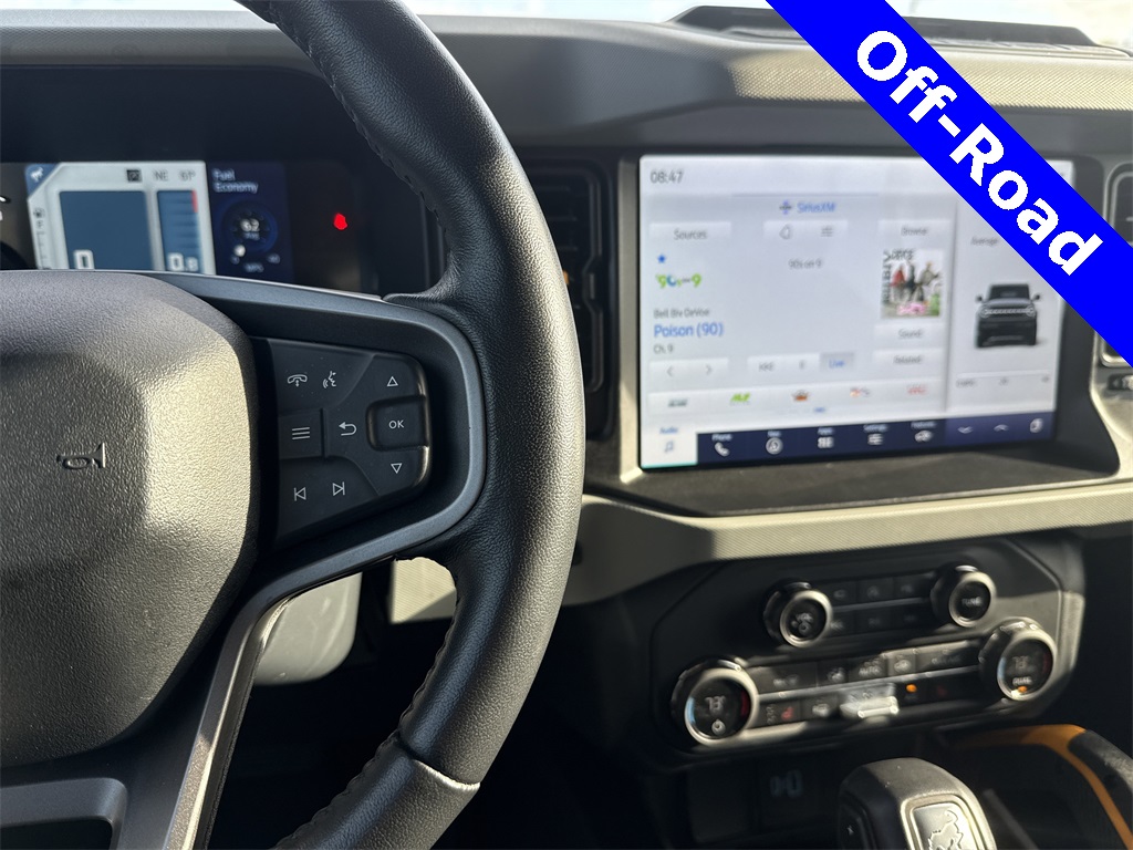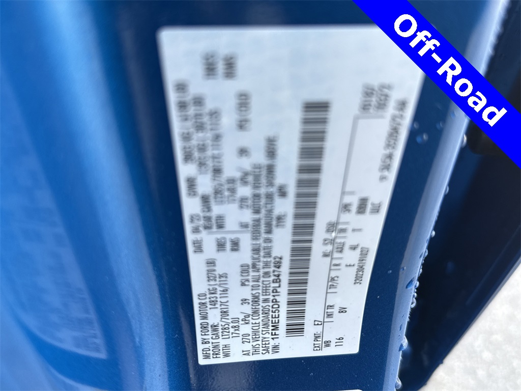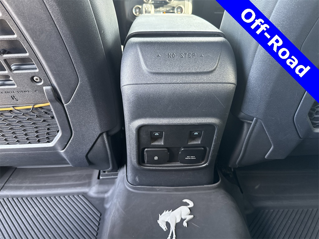 ed door mirrors, Illuminated entry, Low tire pressure warning, Remote keyless entry, Traction control, 4-Wheel Disc Brakes, 7 Speakers, Air Conditioning, AM/FM radio: SiriusXM with 360L, AM/FM Stereo, Auto High-beam Headlights, Brake assist, Delay-off headlights, Driver door bin, Driver vanity mirror, Dual front impact airbags, Dual front side impact airbags, Emergency communication system: 911 Assist, Exterior Parking Camera Rear, Front anti-roll bar, Front Bucket Seats, Front Center Armrest, Front reading lights, Front wheel independent suspension, Fully automatic headlights, Integrated roll-over protection, Occupant sensing airbag, Outside temperature display, Overhead airbag, Overhead console, Panic alarm, Passenger door bin, Passenger vanity mirror, Power door mirrors, Power steering, Power windows, Radio data system, Security system, SiriusXM Radio w/360L, Speed control, Split folding rear seat, Steering wheel mounted audio controls, SYNC 4, Tachometer, Telescoping steering wheel, Tilt steering wheel, Trip computer, and Variably intermittent wipers.