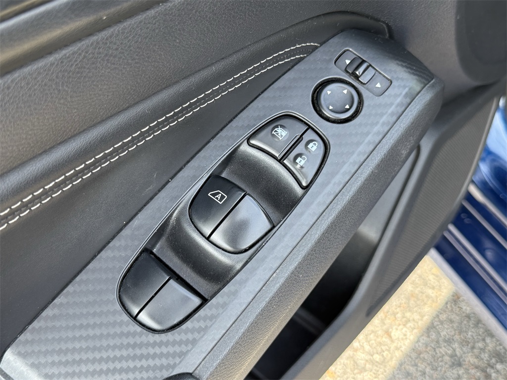 impact airbags, Electronic Stability Control, Floor Mats & Trunk Mat, Four wheel independent suspension, Front anti-roll bar, Front Bucket Seats, Front Center Armrest, Front reading lights, Fully automatic headlights, Illuminated entry, Knee airbag, Low tire pressure warning, NissanConnect featuring Apple CarPlay and Android Auto, Occupant sensing airbag, Outside temperature display, Overhead airbag, Overhead console, Panic alarm, Passenger door bin, Passenger vanity mirror, Power door mirrors, Power driver seat, Power steering, Power windows, Radio data system, Radio: AM/FM Audio System, Rear anti-roll bar, Rear reading lights, Rear seat center armrest, Rear side impact airbag, Rear window defroster, Remote keyless entry, Security system, Speed control, Speed-sensing steering, Speed-Sensitive Wipers, Split folding rear seat, Sport steering wheel, Steering wheel mounted audio controls, Tachometer, Telescoping steering wheel, Tilt steering wheel, Traction control, Trip computer, Variably intermittent wipers, and Wheels: 16" x 7" Steel w/Full Wheel Covers.