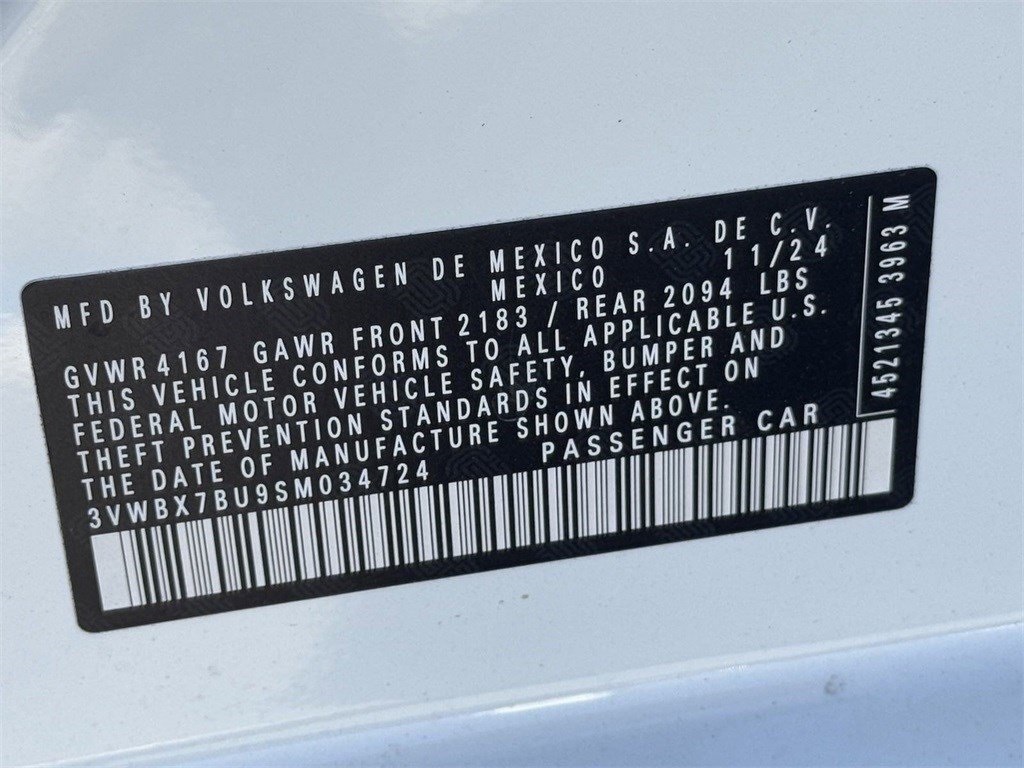 ver door bin, Driver vanity mirror, Dual front impact airbags, Dual front side impact airbags, Electronic Stability Control, Emergency communication system: VW Car-Net Safe & Secure 5-year, Exterior Parking Camera Rear, Front anti-roll bar, Front Bucket Seats, Front Center Armrest, Front dual zone A/C, Front wheel independent suspension, Fully automatic headlights, Heated door mirrors, Heated Front Seats, Heated front seats, Illuminated entry, Leather Shift Knob, Leather steering wheel, Low tire pressure warning, Occupant sensing airbag, Outside temperature display, Overhead airbag, Overhead console, Panic alarm, Passenger door bin, Passenger vanity mirror, Power door mirrors, Power steering, Power windows, Radio data system, Radio: MIB3 Composition Color w/8" Touchscreen, Rain sensing wipers, Rear anti-roll bar, Rear reading lights, Rear seat center armrest, Rear window defroster, Remote keyless entry, Speed control, Speed-sensing steering, Split folding rear seat, Steering wheel mounted audio controls, Tachometer, Telescoping steering wheel, Tilt steering wheel, Traction control, Trip computer, Variably intermittent wipers, and Wheels: 17" 2-Tone Machined Alloy. 2025 Volkswagen Jetta 1.5T Sport 4D Sedan White 29/40 City/Highway MPG Price includes: $2000 - Customer Bonus. Exp. 02/02/2026