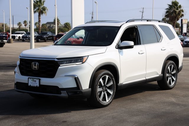 Platinum White Pearl 2025 Honda Pilot Touring AWD 10-Speed Automatic 3.5L V6 DOHC 24V AWD, 12 Speakers, 3rd row seats: split-bench, 4-Wheel Disc Brakes, ABS brakes, Adaptive Cruise Control: Adaptive Cruise Control (ACC) with Low-Speed Follow, Air Conditioning, All Season Mat, Alloy wheels, AM/FM radio: SiriusXM, Apple CarPlay/Android Auto, Auto High-beam Headlights, Automatic temperature control, Blind Spot Information (BSI) System warning, Bose Premium Sound System, Brake assist, Cargo Cover, C