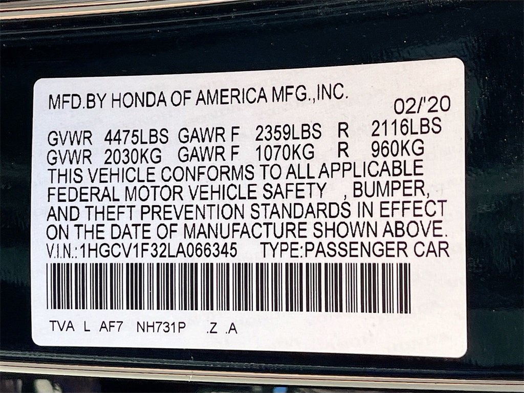 1HGCV1F32LA066345Stock #