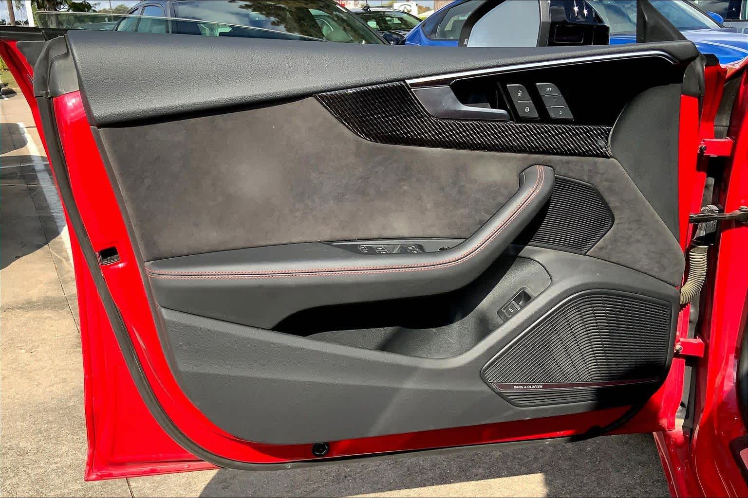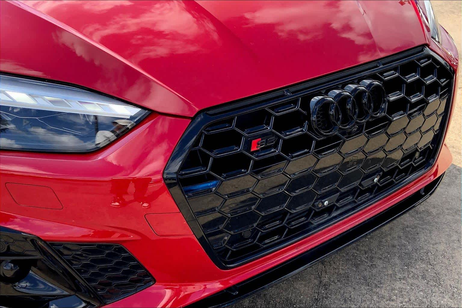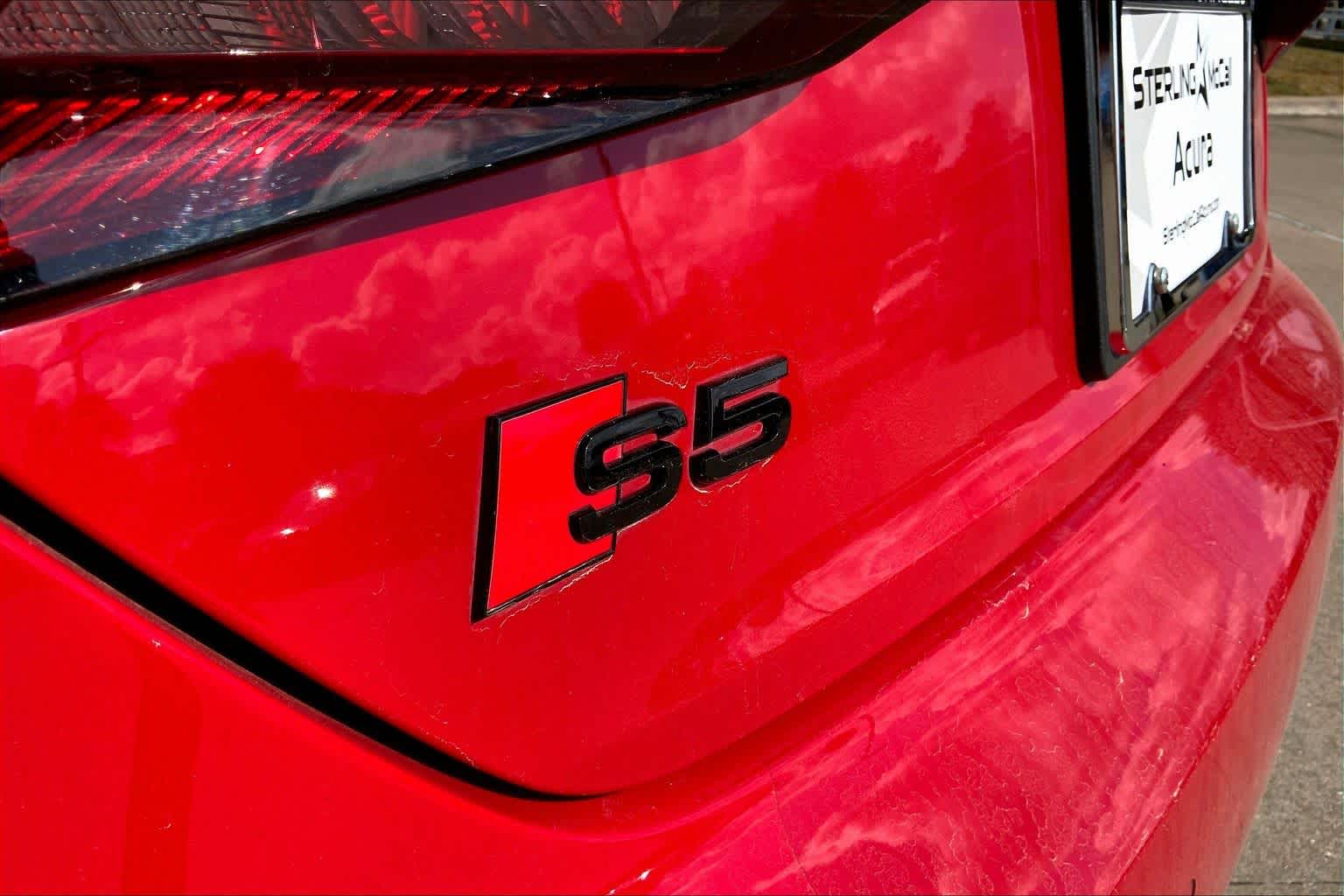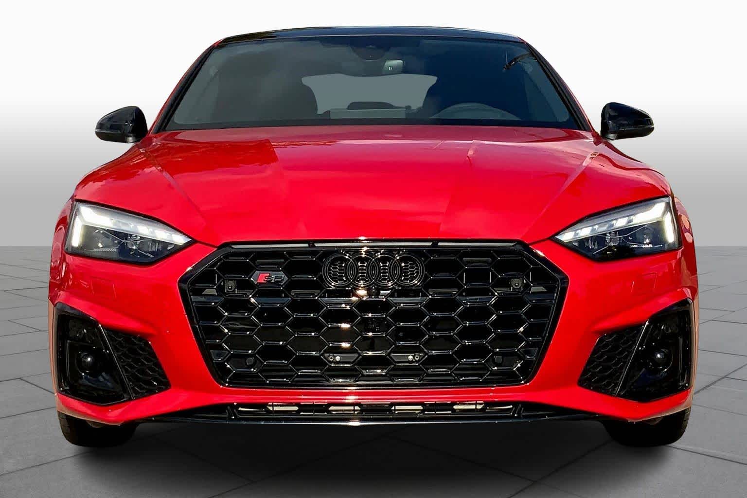 • PROGRESSIVE RED METALLIC ,BLACK, FINE NAPPA LEATHER SEATING SURFACES ,AUDI GUARD ALL-WEATHER MATS -inc: front and rear set of black rubber mats (4), Front set features S5 logo (PIO) ,BLACK OPTIC PLUS PACKAGE -inc: Black Exterior Mirror Housings & Exhaust Tips, Wheels: 20 5-Twin-Spoke Polygon Design, Bi-color finish, Tires: 265/30R20 94Y XL Summer, Black Rear Lip Spoiler, Black Fender Badges, Black Exterior Trim, Black Audi Rings & Badges ,S SPORT PACKAGE -inc: Sport Adaptive Damping Suspension, Red Brake Calipers, Sport Rear Differential ,AUDI S BEAM -inc: lower door trim LED light displaying S logo, Front doors only (PIO) ,SPORT EXHAUST RESONATOR (PIO) ,PRESTIGE PACKAGE -inc: LED Interior Lighting Plus Package, door trim contour and color options, Wireless Phone Charging Pad, Power Folding Exterior Mirrors, 2 Rear USB Charge Ports, Top View Camera System, Heated Rear Seats, Alarm System w/Motion Sensor, Auto-Dimming Exterior Mirrors w/Memory, SiriusXM w/360L, 3-month Platinum Plan trial subscription, Audi Advanced Key, keyless engine start/stop and entry, doors and trunk, Audi Side Assist w/Pre Sense Rear, Driver Seat Memory, Animation for Headlights & Taillights, MMI Navigation Plus, Traffic Sign Recognition, Audi Connect NAV & PLUS, Audi app store and 6-month trial subscription, Audi Laser Light & Headlight Washers, Leatherette Covered Center Console & Door Armrests, Bang & Olufsen Sound System w/3D Sound, Head-Up Display, Audi Virtual Cockpit Plus, Park Assist, parking entry functionality ,AUDI SPORT INTERIOR PACKAGE -inc: crescendo red stitched interior and RS carbon inlays