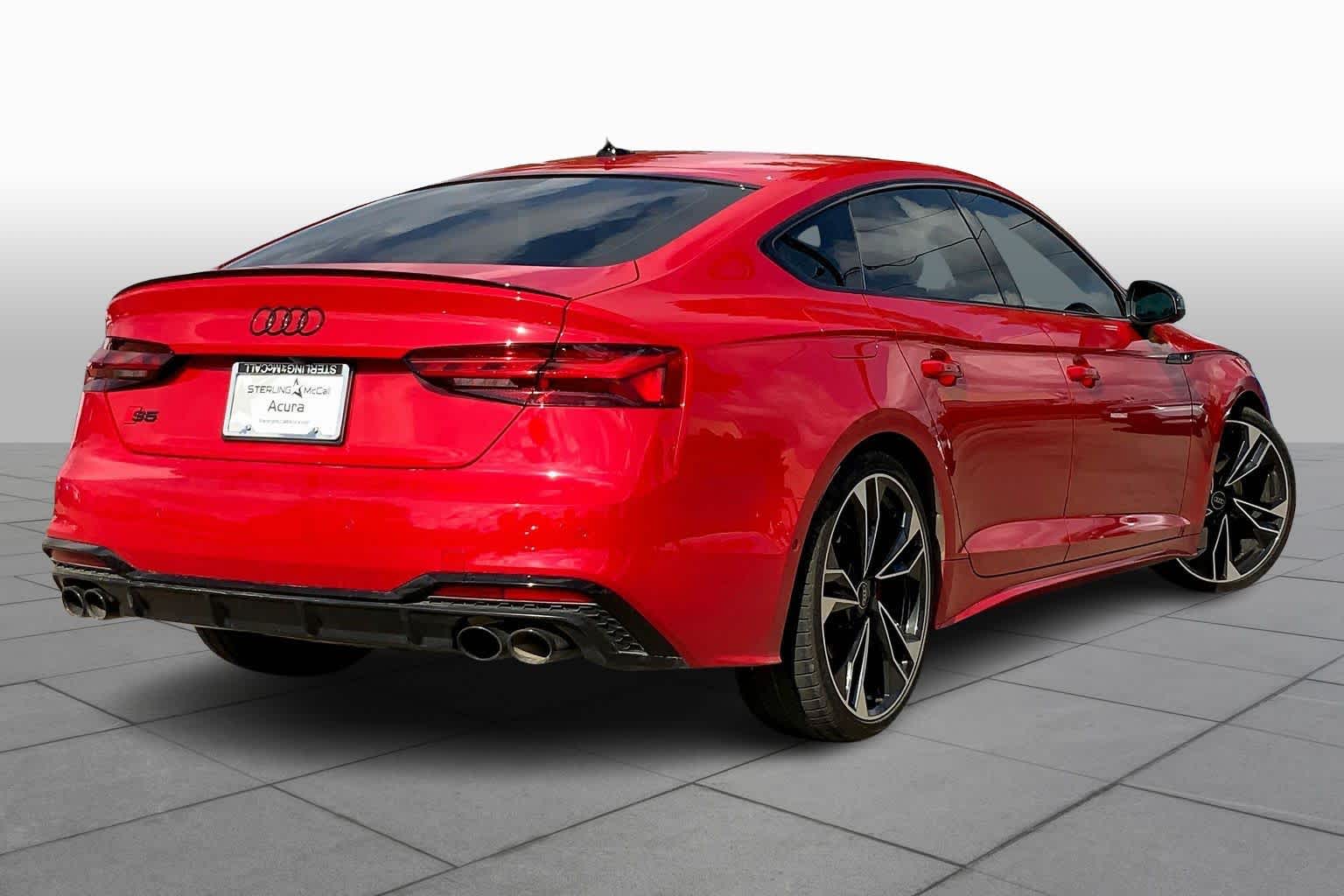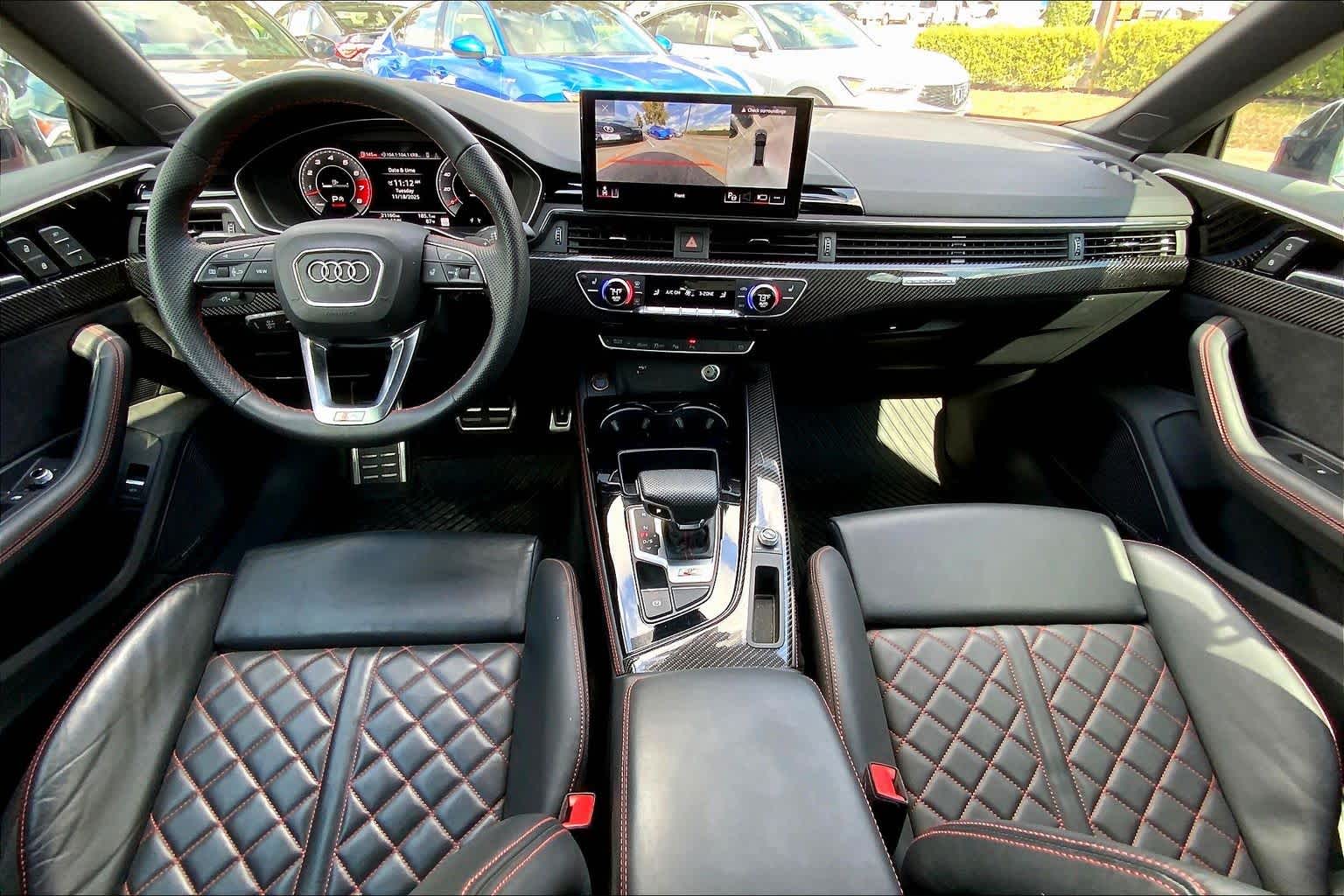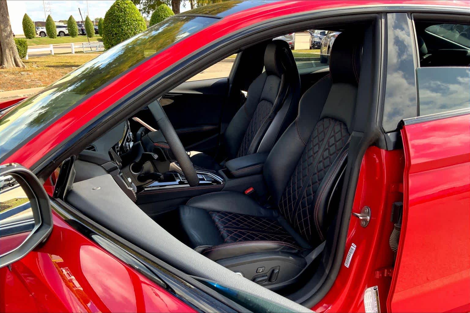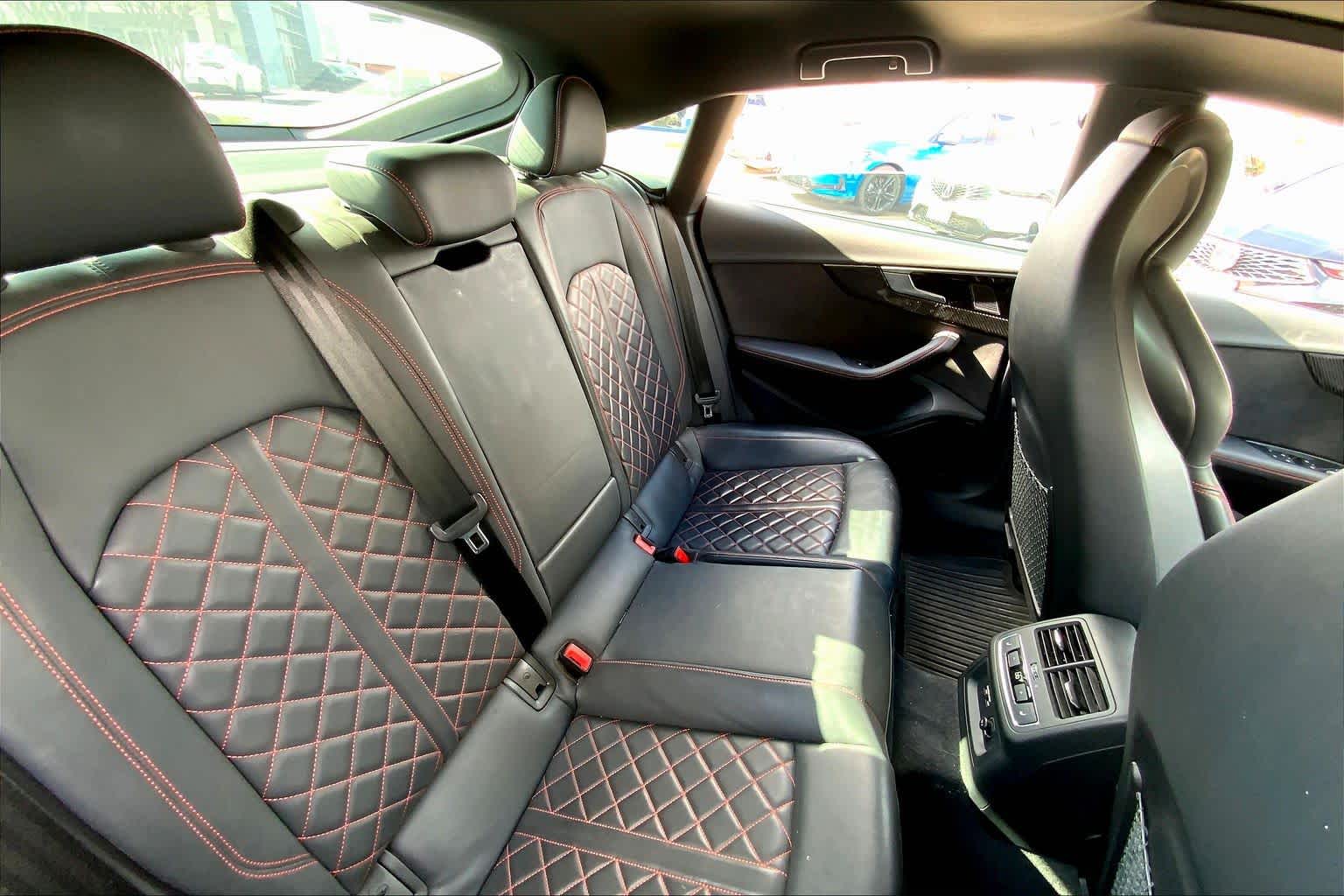 • PROGRESSIVE RED METALLIC ,BLACK, FINE NAPPA LEATHER SEATING SURFACES ,AUDI GUARD ALL-WEATHER MATS -inc: front and rear set of black rubber mats (4), Front set features S5 logo (PIO) ,BLACK OPTIC PLUS PACKAGE -inc: Black Exterior Mirror Housings & Exhaust Tips, Wheels: 20 5-Twin-Spoke Polygon Design, Bi-color finish, Tires: 265/30R20 94Y XL Summer, Black Rear Lip Spoiler, Black Fender Badges, Black Exterior Trim, Black Audi Rings & Badges ,S SPORT PACKAGE -inc: Sport Adaptive Damping Suspension, Red Brake Calipers, Sport Rear Differential ,AUDI S BEAM -inc: lower door trim LED light displaying S logo, Front doors only (PIO) ,SPORT EXHAUST RESONATOR (PIO) ,PRESTIGE PACKAGE -inc: LED Interior Lighting Plus Package, door trim contour and color options, Wireless Phone Charging Pad, Power Folding Exterior Mirrors, 2 Rear USB Charge Ports, Top View Camera System, Heated Rear Seats, Alarm System w/Motion Sensor, Auto-Dimming Exterior Mirrors w/Memory, SiriusXM w/360L, 3-month Platinum Plan trial subscription, Audi Advanced Key, keyless engine start/stop and entry, doors and trunk, Audi Side Assist w/Pre Sense Rear, Driver Seat Memory, Animation for Headlights & Taillights, MMI Navigation Plus, Traffic Sign Recognition, Audi Connect NAV & PLUS, Audi app store and 6-month trial subscription, Audi Laser Light & Headlight Washers, Leatherette Covered Center Console & Door Armrests, Bang & Olufsen Sound System w/3D Sound, Head-Up Display, Audi Virtual Cockpit Plus, Park Assist, parking entry functionality ,AUDI SPORT INTERIOR PACKAGE -inc: crescendo red stitched interior and RS carbon inlays