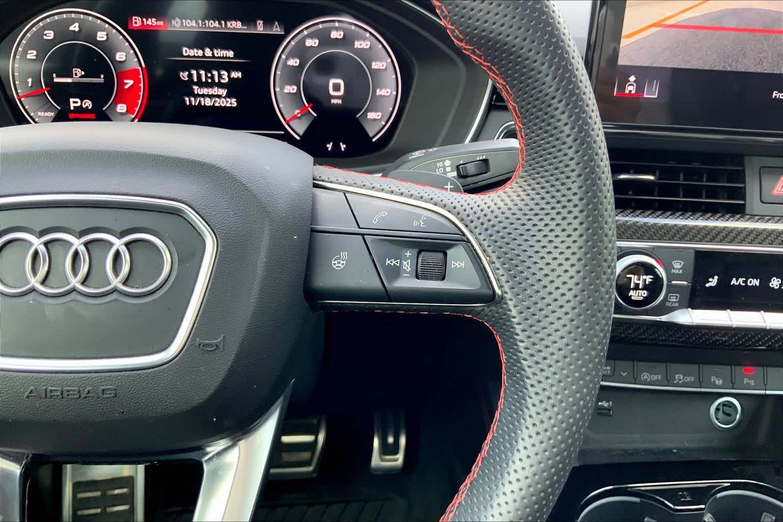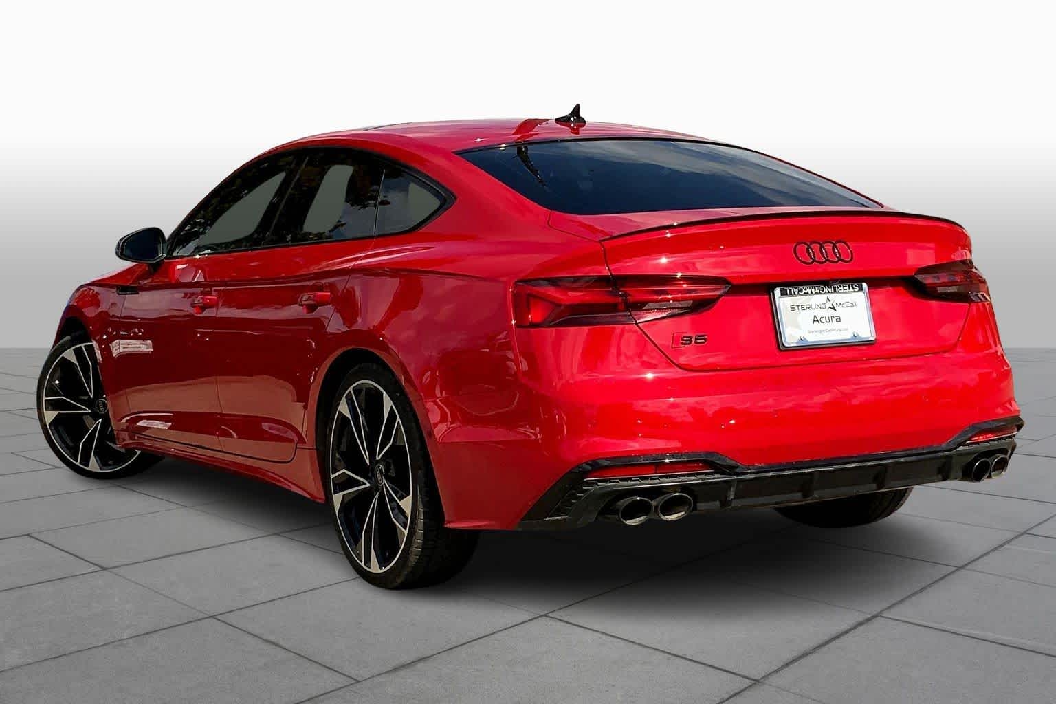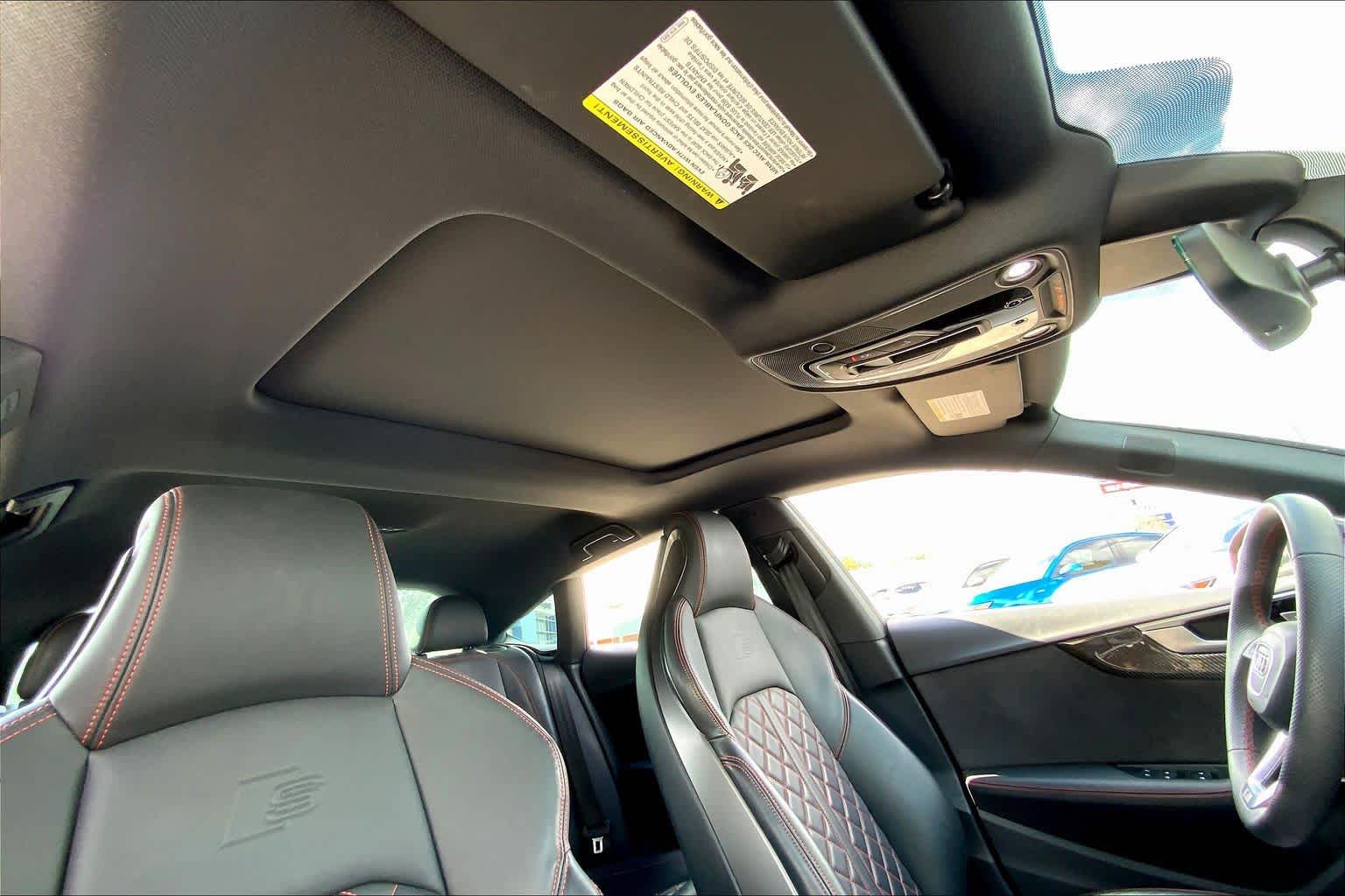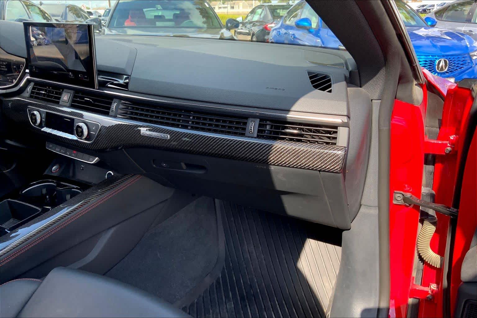 • PROGRESSIVE RED METALLIC ,BLACK, FINE NAPPA LEATHER SEATING SURFACES ,AUDI GUARD ALL-WEATHER MATS -inc: front and rear set of black rubber mats (4), Front set features S5 logo (PIO) ,BLACK OPTIC PLUS PACKAGE -inc: Black Exterior Mirror Housings & Exhaust Tips, Wheels: 20 5-Twin-Spoke Polygon Design, Bi-color finish, Tires: 265/30R20 94Y XL Summer, Black Rear Lip Spoiler, Black Fender Badges, Black Exterior Trim, Black Audi Rings & Badges ,S SPORT PACKAGE -inc: Sport Adaptive Damping Suspension, Red Brake Calipers, Sport Rear Differential ,AUDI S BEAM -inc: lower door trim LED light displaying S logo, Front doors only (PIO) ,SPORT EXHAUST RESONATOR (PIO) ,PRESTIGE PACKAGE -inc: LED Interior Lighting Plus Package, door trim contour and color options, Wireless Phone Charging Pad, Power Folding Exterior Mirrors, 2 Rear USB Charge Ports, Top View Camera System, Heated Rear Seats, Alarm System w/Motion Sensor, Auto-Dimming Exterior Mirrors w/Memory, SiriusXM w/360L, 3-month Platinum Plan trial subscription, Audi Advanced Key, keyless engine start/stop and entry, doors and trunk, Audi Side Assist w/Pre Sense Rear, Driver Seat Memory, Animation for Headlights & Taillights, MMI Navigation Plus, Traffic Sign Recognition, Audi Connect NAV & PLUS, Audi app store and 6-month trial subscription, Audi Laser Light & Headlight Washers, Leatherette Covered Center Console & Door Armrests, Bang & Olufsen Sound System w/3D Sound, Head-Up Display, Audi Virtual Cockpit Plus, Park Assist, parking entry functionality ,AUDI SPORT INTERIOR PACKAGE -inc: crescendo red stitched interior and RS carbon inlays