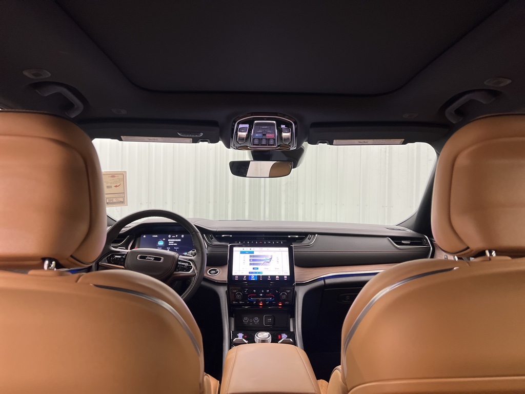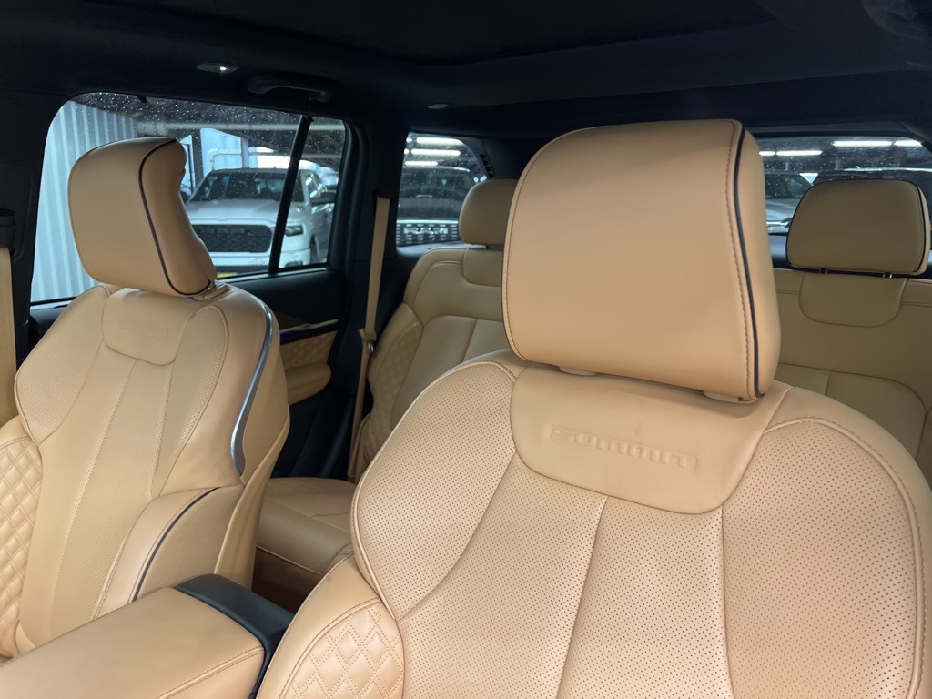 adio: SiriusXM with 360L, Anti-whiplash front head restraints, Audio memory, Auto High-beam Headlights, Auto-dimming door mirrors, Auto-dimming Rear-View mirror, Auto-leveling suspension, Automatic temperature control, Auxiliary Battery, Brake assist, Bumpers: body-color, Compass, Delay-off headlights, Driver door bin, Driver vanity mirror, Dual front impact airbags, Dual front side impact airbags, Electronic Stability Control, Emergency communication system, Four wheel independent suspension, Front anti-roll bar, Front Bucket Seats, Front Center Armrest w/Storage, Front dual zone A/C, Front fog lights, Front License Plate Bracket, Front reading lights, Fully automatic headlights, Garage door transmitter, Genuine wood dashboard insert, Genuine wood door panel insert, Heated door mirrors, Heated front seats, Heated rear seats, Heated steering wheel, Illuminated entry, Knee airbag, Leather steering wheel, Low tire pressure warning, Memory seat, Nappa Leather Seats, Navigation System, Normal Duty Suspension, Occupant sensing airbag, Outside temperature display, Overhead airbag, Overhead console, Panic alarm, Passenger door bin, Passenger vanity mirror, Power door mirrors, Power driver seat, Power Liftgate, Power moonroof, Power passenger seat, Power steering, Power windows, Radio data system, Radio: Uconnect 5 Nav w/10.1" Display, Rain sensing wipers, Rear air conditioning, Rear anti-roll bar, Rear dual zone A/C, Rear reading lights, Rear seat center armrest, Rear window defroster, Rear window wiper, Remote keyless entry, Security system, Speed control, Speed-Sensitive Wipers, Split folding rear seat, Spoiler, Steering wheel memory, Steering wheel mounted audio controls, Tachometer, Telescoping steering wheel, Tilt steering wheel, Traction control, Trip computer, Turn signal indicator mirrors, Variably intermittent wipers, Ventilated front seats, Voltmeter, and Wheels: 20" x 8.5" Fully Painted Aluminum Silver.