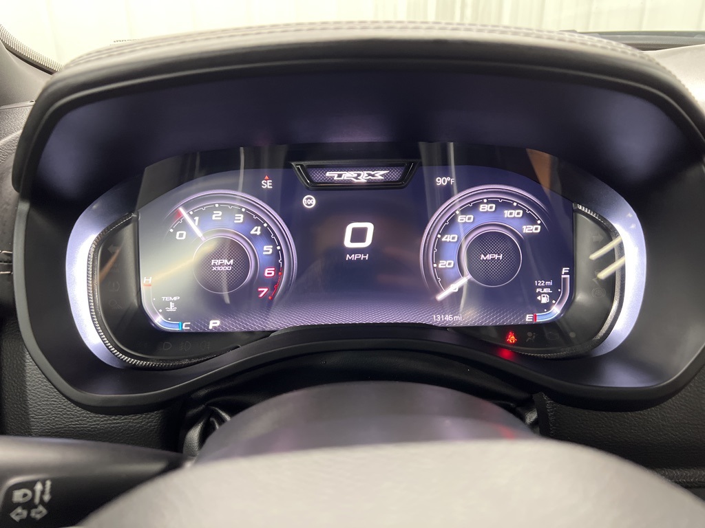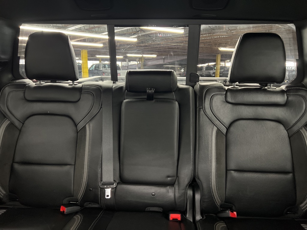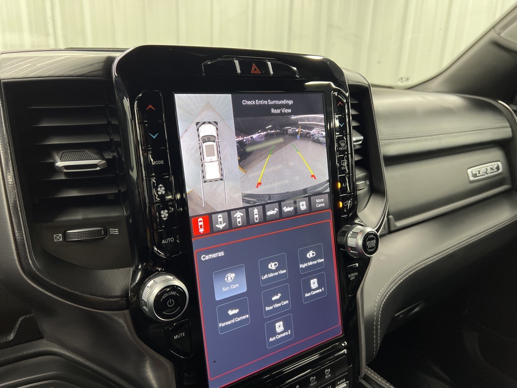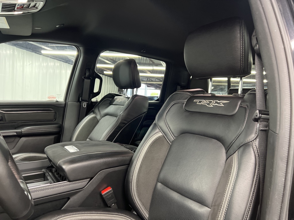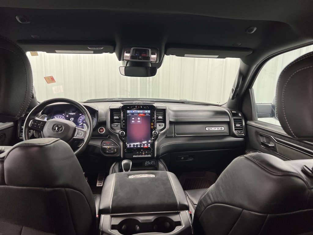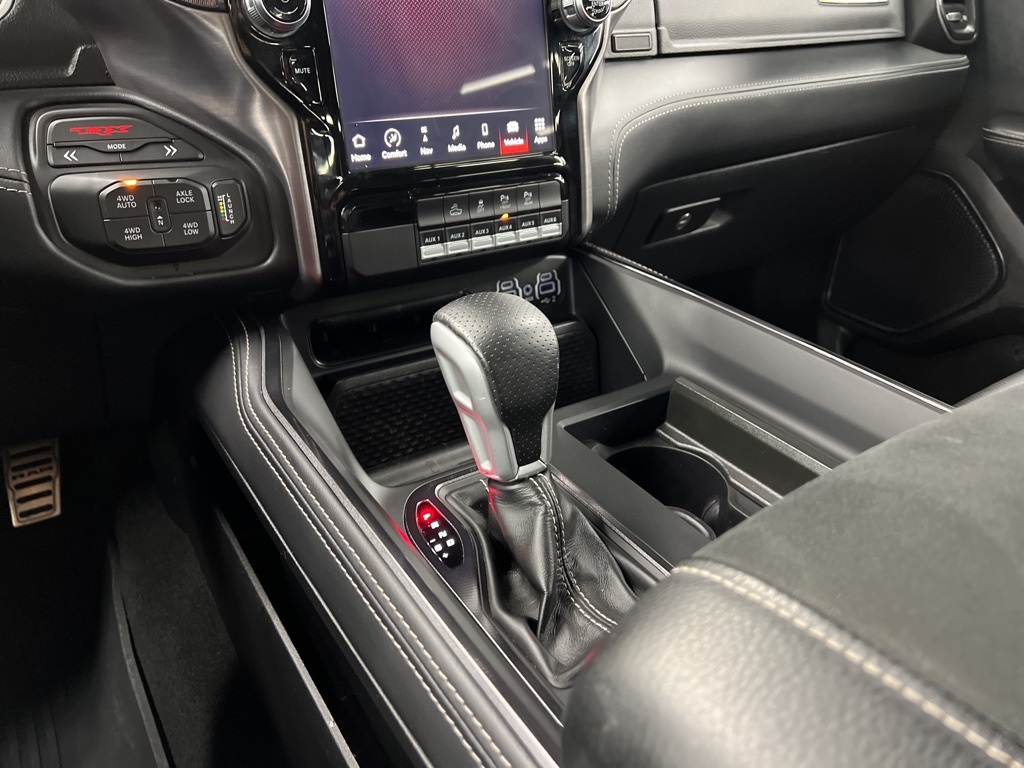 Accent Lighting, Front Seat Back Map Pockets, Full Length Premium Upgraded Floor Console, Heated Front Seats, Heated Steering Wheel, IP LED Ambient Light Pipe, Leather Trimmed Bucket Seats, Luxury Front Door Trim Panel, MOPAR Bright Pedal Kit, Pick-Up Box Lighting, Power 4-Way Driver Lumbar Adjust, Power 4-Way Passenger Lumbar Adjust, Power 8-Way Driver & Passenger Seats, Power Adjustable Pedals, Premium Wrapped IP Bezel, Rain Sensitive Windshield Wipers, Rear 60/40 Folding Seat, Rear Door Accent Lighting, Rear Underseat Compartment Storage, Rear Window Defroster, Sun Visors w/Illuminated Vanity Mirrors, and Universal Garage Door Opener), 10 Speakers, 3.55 Rear Axle Ratio, 4-Wheel Disc Brakes, ABS brakes, Adaptive suspension, Air Conditioning, Alloy wheels, AM/FM radio: SiriusXM with 360L, Apple CarPlay/Android Auto, Auto High-beam Headlights, Auto-dimming door mirrors, Auto-dimming Rear-View mirror, Automatic temperature control, Blind Spot & Cross Path Detection, Brake assist, Cloth/Vinyl Bucket Seats, Compass, Delay-off headlights, Driver door bin, Dual front impact airbags, Dual front side impact airbags, Electronic Stability Control, Exterior Mirrors Courtesy Lamps, Exterior Mirrors w/Heating Element, Exterior Mirrors w/Supplemental Signals, Front anti-roll bar, Front Bucket Seats, Front Center Armrest w/Storage, Front dual zone A/C, Front fog lights, Front License Plate Bracket, Front reading lights, Front wheel independent suspension, Fully automatic headlights, Heated door mirrors, Illuminated entry, Leather Shift Knob, Leather steering wheel, Low tire pressure warning, Navigation System, Occupant sensing airbag, Outside temperature display, Overhead airbag, Overhead console, Panic alarm, ParkSense Front/Rear Park Assist w/Stop, ParkView Rear Back-Up Camera, Passenger door bin, Passenger vanity mirror, Power door mirrors, Power driver seat, Power steering, Power windows, Power-Folding Mirrors, Radio data system, Radio: Uconnect 5 Nav w/12.0" Display, Rear seat center armrest, Rear step bumper, Remote keyless entry, Security system, Speed control, Split folding rear seat, Sport steering wheel, Steering wheel mounted audio controls, Surround View Camera System, Tachometer, Telescoping steering wheel, Tilt steering wheel, Traction control, Trip computer, Turn signal indicator mirrors, Variably intermittent wipers, Voltmeter, and Wheels: 18" x 9" Black Paint/Polish Aluminum.