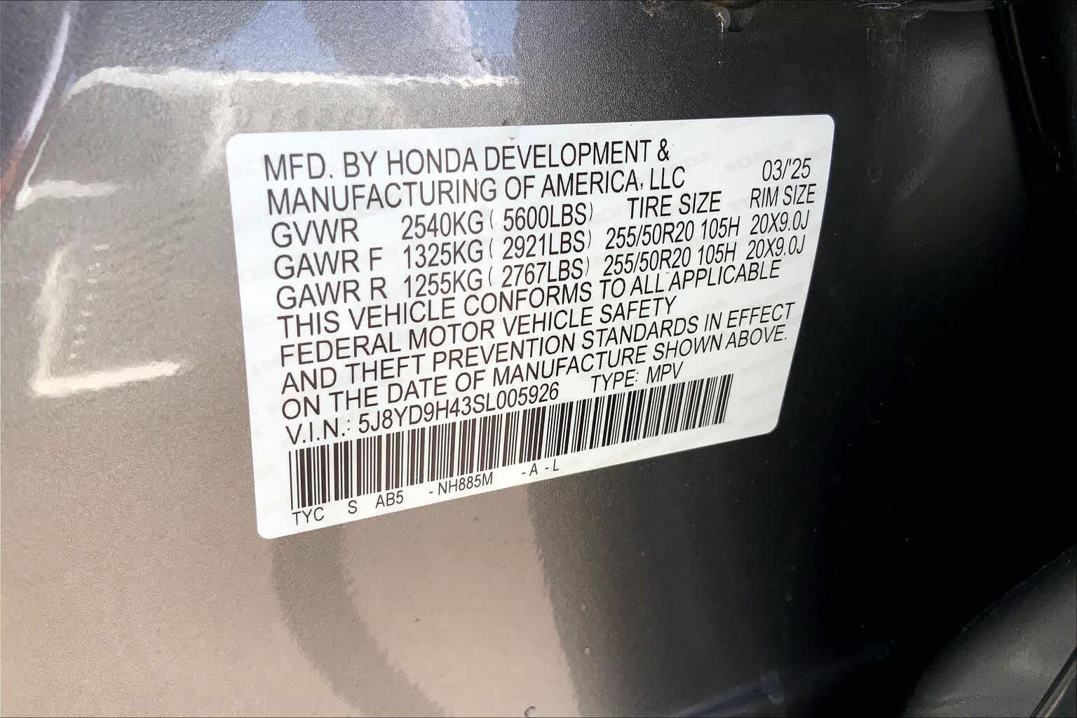 5J8YD9H43SL005926Stock #