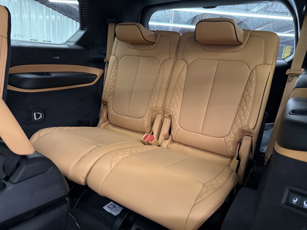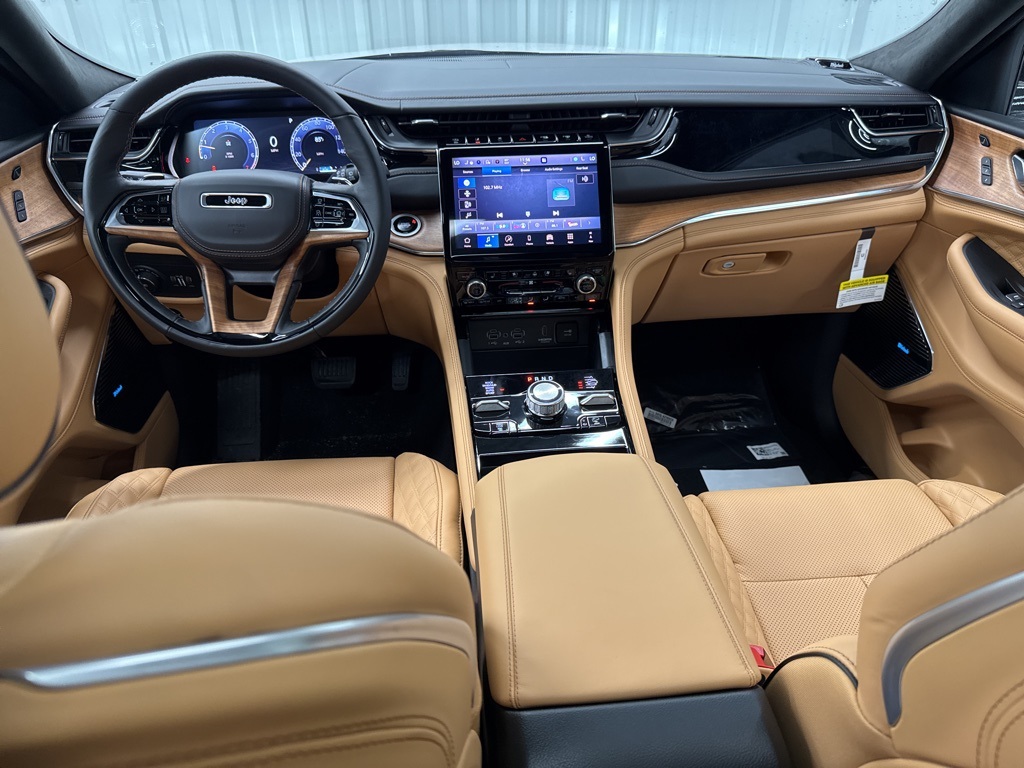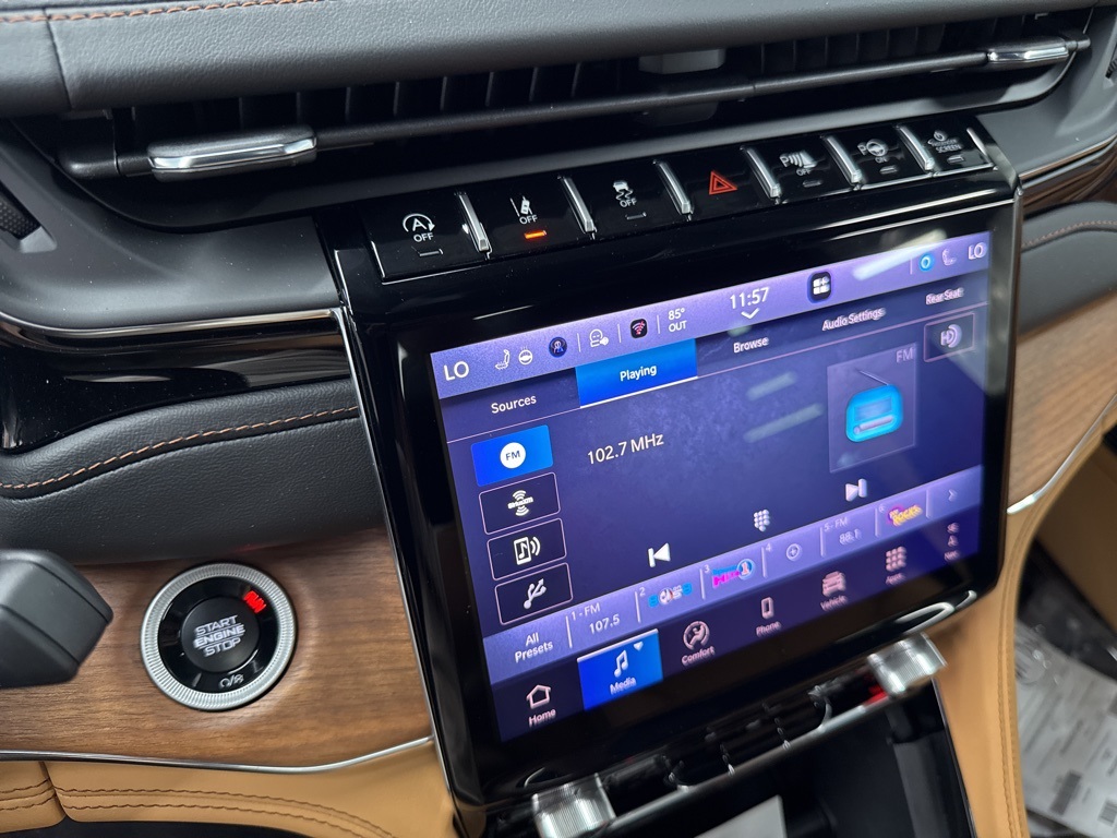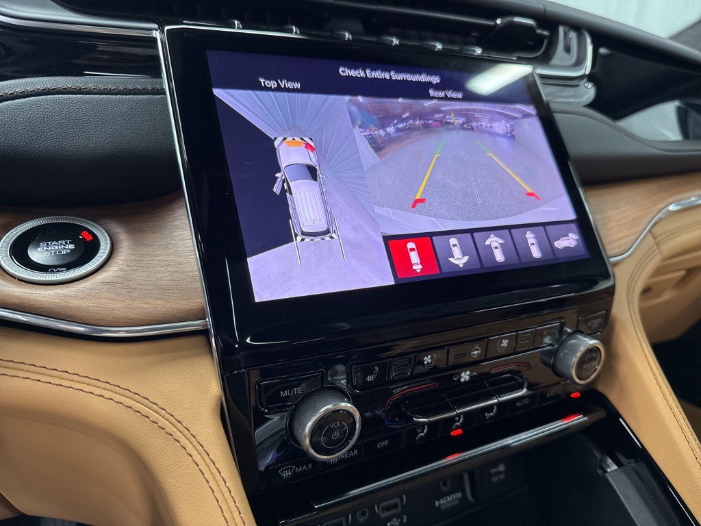 Exterior Accents, Neutral Gray Exterior Accents, Painted Door Cladding, and Wheels: 21" x 9" Black Painted Aluminum), MOPAR Finishing Package (MOPAR Front Splash Guards, MOPAR Paint Protection Film, and MOPAR Rear Splash Guards w/Jeep Logo), Quick Order Package 23U Summit Reserve (19 Speakers High Performance Audio, 950 Watt Amplifier, Active Noise Control System, Deluxe Headliner, Front Passenger Interactive Display, Palermo Leather Door Trim, Palermo Leather Seats, Summit, Summit Badge, Ventilated Rear Seats, and Wheels: 21" x 9.0" Machined Face/Painted Aluminum), Rear Seat Video Group I (Amazon Fire TV Built-In, Seatback Video Screens, and Video USB Port), Two Tone Paint Group, 10 Speakers, 3.45 Rear Axle Ratio, 3rd row seats: split-bench, 4-Wheel Disc Brakes, ABS brakes, Adaptive suspension, Air Conditioning, Alloy wheels, AM/FM radio: SiriusXM with 360L, Anti-whiplash front head restraints, Audio memory, Auto High-beam Headlights, Auto-dimming door mirrors, Auto-dimming Rear-View mirror, Auto-leveling suspension, Automatic temperature control, Brake assist, Bumpers: body-color, Compass, Delay-off headlights, Driver door bin, Driver vanity mirror, Dual front impact airbags, Dual front side impact airbags, Electronic Stability Control, Emergency communication system, Four wheel independent suspension, Front anti-roll bar, Front Bucket Seats, Front Center Armrest w/Storage, Front dual zone A/C, Front fog lights, Front License Plate Bracket, Front reading lights, Fully automatic headlights, Garage door transmitter, Genuine wood dashboard insert, Genuine wood door panel insert, Heated door mirrors, Heated front seats, Heated rear seats, Heated steering wheel, Illuminated entry, Knee airbag, Leather steering wheel, Low tire pressure warning, Memory seat, Model Year Tracking, Nappa Leather Seats, Navigation System, Normal Duty Suspension, Occupant sensing airbag, Outside temperature display, Overhead airbag, Overhead console, Panic alarm, Passenger door bin, Passenger vanity mirror, Power door mirrors, Power driver seat, Power Fold Seatbacks, Power Liftgate, Power moonroof, Power passenger seat, Power steering, Power windows, Radio data system, Radio: Uconnect 5 Nav w/10.1" Display, Rain sensing wipers, Rear air conditioning, Rear anti-roll bar, Rear dual zone A/C, Rear reading lights, Rear seat center armrest, Rear window defroster, Rear window wiper, Reclining 3rd row seat, Remote keyless entry, Security system, Speed control, Speed-Sensitive Wipers, Split folding rear seat, Spoiler, Steering wheel memory, Steering wheel mounted audio controls, Tachometer, Telescoping steering wheel, Tilt steering wheel, Traction control, Trip computer, Turn signal indicator mirrors, Variably intermittent wipers, Ventilated front seats, Voltmeter, and Wheels: 20" x 8.5" Fully Painted Aluminum Silver.