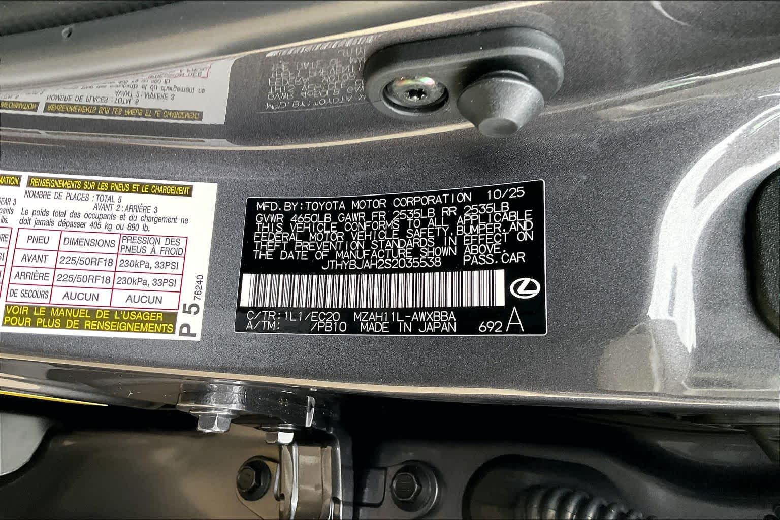 JTHYBJAH2S2035538Stock #