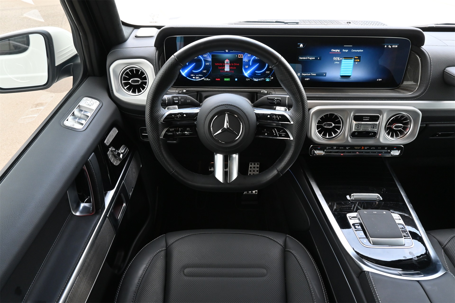 This 2025 Mercedes-Benz G-Class G 580 is loaded with the following Factory Options:12-Way Power Front Seats w/Memory Function, 18 Speakers, 4-Wheel Disc Brakes, ABS brakes, Adaptive suspension, Air Conditioning, Alloy wheels, AM/FM radio: SiriusXM, Apple CarPlay®/Android Auto®, Auto High-beam Headlights, Auto tilt-away steering wheel, Auto-dimming door mirrors, Auto-dimming Rear-View mirror, Automatic temperature control, Bodyside moldings, Brake assist, Bumpers: body-color, Child-Seat-Sensing A