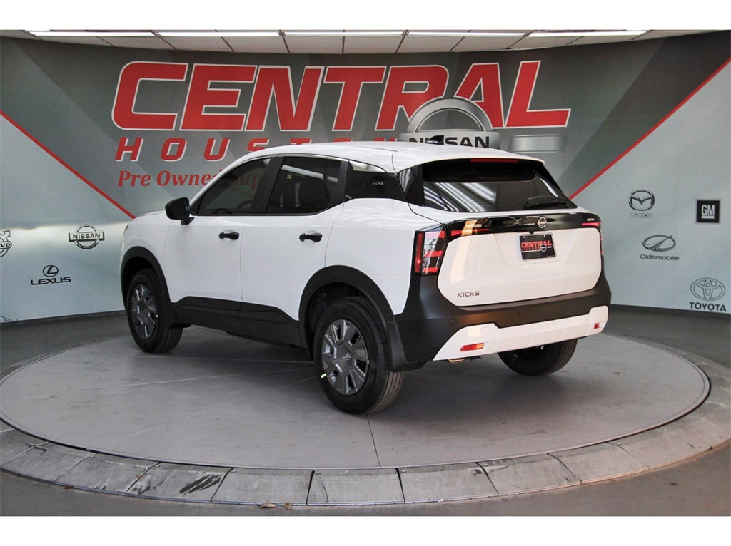Central Houston Nissan is proud to present you with another True Market Priced Vehicle. This 2026 Nissan Kicks S is loaded with the following Factory Options: 16" Steel Wheels w/Full Covers, 4 Speakers, 4-Wheel Disc Brakes, ABS brakes, Air Conditioning, AM/FM radio, Auto High-beam Headlights, Blind Spot Warning, Brake assist, Bumpers: body-color, Cloth Seat Trim, Driver door bin, Driver vanity mirror, Driver's Seat Mounted Armrest, Dual front impact airbags, Dual front side impact airbags, Elect