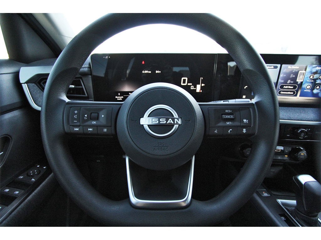 ng, Brake assist, Bumpers: body-color, Carpeted Floor Mats & Underfloor Protector, Cloth Seat Trim, Driver door bin, Driver vanity mirror, Dual front impact airbags, Dual front side impact airbags, Electronic Stability Control, Emergency communication system, Exterior Parking Camera Rear, Front anti-roll bar, Front Bucket Seats, Front Center Armrest, Front reading lights, Front wheel independent suspension, Fully automatic headlights, Illuminated entry, Knee airbag, Low tire pressure warning, NissanConnect featuring Apple CarPlay and Android Auto, Occupant sensing airbag, Outside temperature display, Overhead airbag, Panic alarm, Panoramic Headliner Illumination, Passenger door bin, Passenger vanity mirror, Power door mirrors, Power steering, Power windows, Radio data system, Radio: AM/FM/SiriusXM Audio System, Rear anti-roll bar, Rear reading lights, Rear side impact airbag, Rear window defroster, Rear window wiper, Remote keyless entry, Security system, Speed control, Speed-sensing steering, Splash Guards, Split folding rear seat, Spoiler, Sport steering wheel, Steering wheel mounted audio controls, Tachometer, Telescoping steering wheel, Tilt steering wheel, Traction control, Trip computer, Variably intermittent wipers, and Wheels: 17" Steel Flex w/Full Covers!!