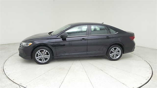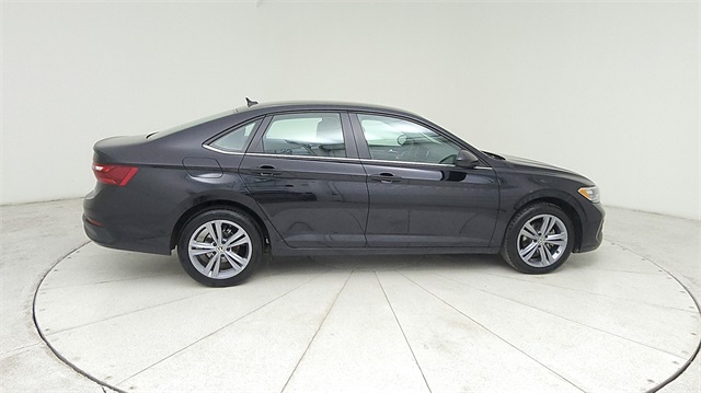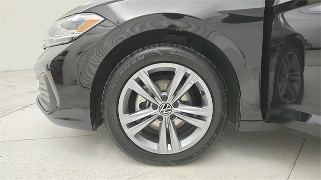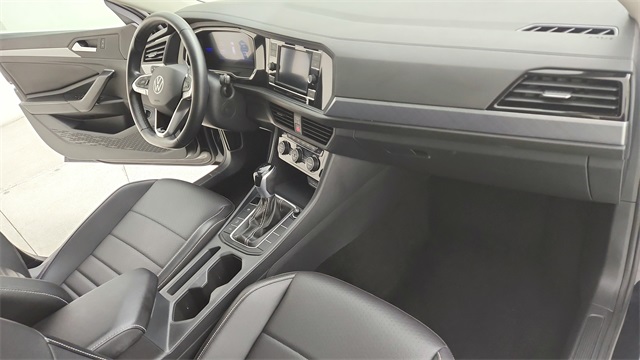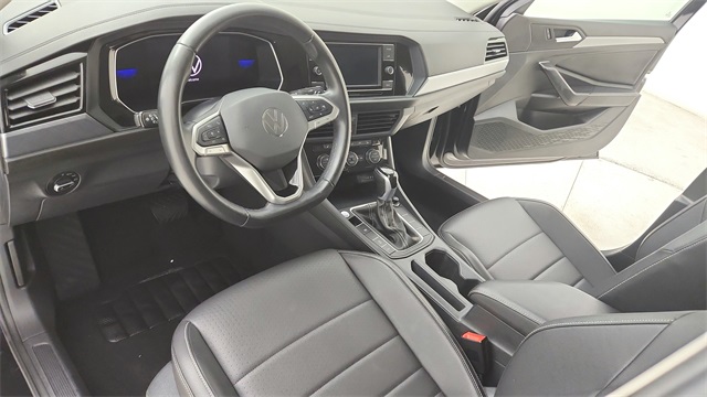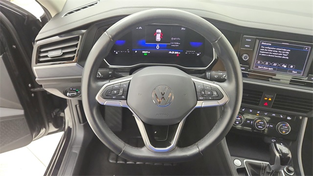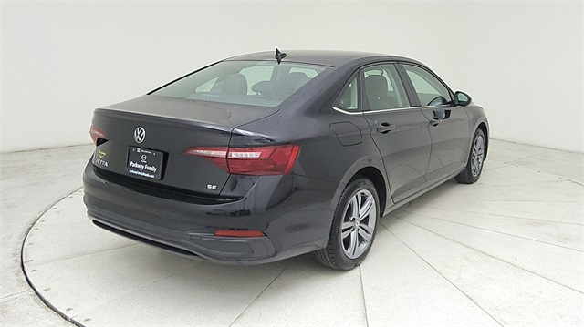 This 2024 Volkswagen Jetta 1.5T SE in Deep Black Pearl comes with the following features: 1.5L I-4 DI DOHC Turbocharged 8-Speed Automatic with Tiptronic FWD Titan Black w/Cloth Seat Trim, 4 Speakers, 4-Wheel Disc Brakes, ABS brakes, Active Blind Spot Monitor, Air Conditioning, Alloy wheels, Auto-dimming Rear-View mirror, Automatic temperature control, Brake assist, Bumpers: body-color, Delay-off headlights, Driver door bin, Driver vanity mirror, Dual front impact airbags, Dual front side impact airbags, Electronic Stability Control, Emergency communication system: VW Car-Net Safe & Secure 5-year, Exterior Parking Camera Rear, Front anti-roll bar, Front Bucket Seats, Front Center Armrest, Front dual zone A/C, Front wheel independent suspension, Fully automatic headlights, Heated door mirrors, Heated Front Seats, Heated front seats, Illuminated entry, Leather Shift Knob, Leather steering wheel, Low tire pressure warning, Occupant sensing airbag, Outside temperature display, Overhead airbag, Overhead console, Panic alarm, Passenger door bin, Passenger vanity mirror, Power door mirrors, Power driver seat, Power steering, Power windows, Radio data system, Radio: MIB3 Composition Color w/6.5" Touchscreen, Rain sensing wipers, Rear anti-roll bar, Rear reading lights, Rear seat center armrest, Rear window defroster, Remote keyless entry, Speed control, Speed-sensing steering, Split folding rear seat, Steering wheel mounted audio controls, Tachometer, Telescoping steering wheel, Tilt steering wheel, Traction control, Trip computer, V-Tex Leatherette Seat Trim, Variably intermittent wipers, and Wheels: 17" Twin 5-Spoke Silver Painted Alloy.