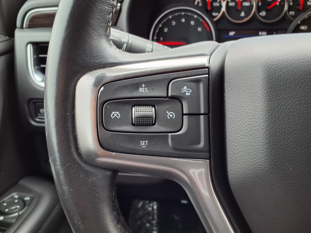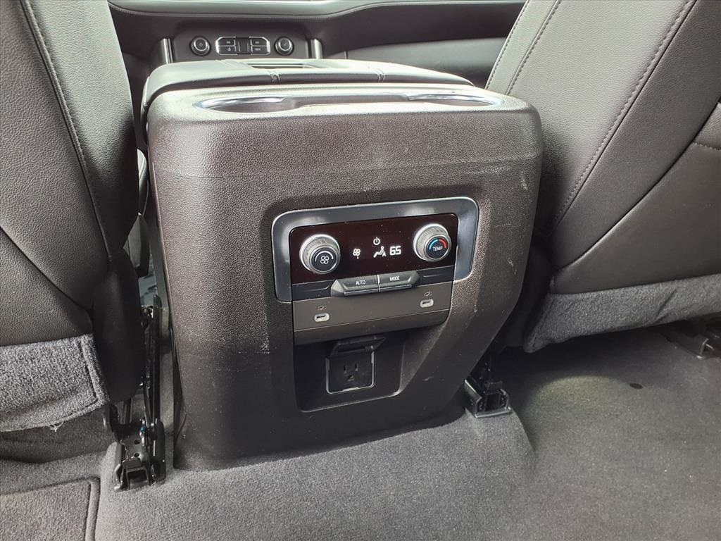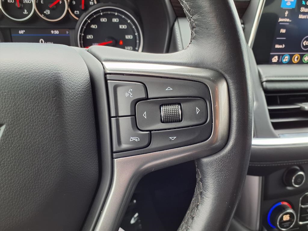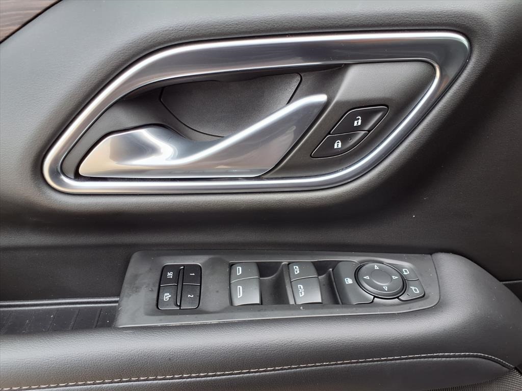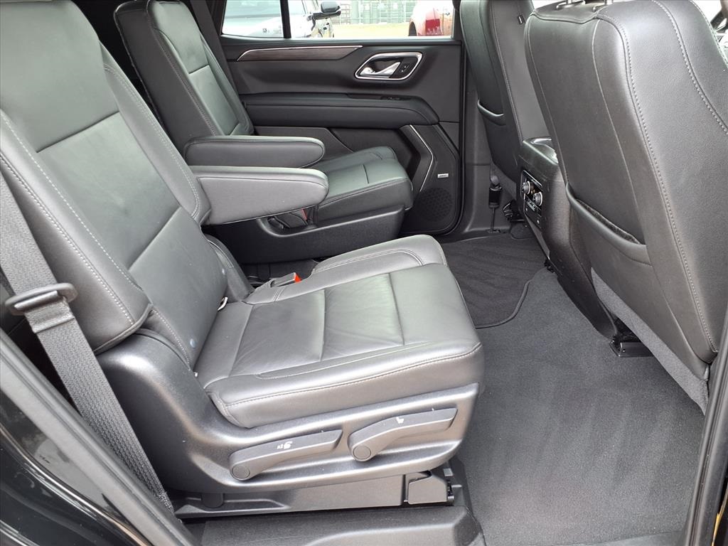 io, Infotainment Display, Leather-Wrapped Steering Wheel, LED Daytime Running Lamps, Memory Settings for Driver, Remote Start, SiriusXM Radio w/360L, and Universal Home Remote), Black Leather, 10-Way Power Driver & Passenger Seat Adjusters, 2nd Row Manual Bucket Seats, 3.23 Rear Axle Ratio, 3rd row seats: split-bench, 4-Wheel Disc Brakes, 9 Speakers, ABS brakes, Air Conditioning, Alloy wheels, AM/FM radio: SiriusXM with 360L, Apple CarPlay/Android Auto, Auto High-beam Headlights, Auto-dimming Rear-View mirror, Automatic temperature control, Bose 9-Speaker Stereo Audio System Feature, Brake assist, Bumpers: body-color, Compass, Delay-off headlights, Driver door bin, Driver vanity mirror, Dual front impact airbags, Dual front side impact airbags, Dual-Pane Power Panoramic Sunroof, Electronic Stability Control, Emergency communication system: OnStar and Chevrolet connected services capable, Four wheel independent suspension, Front anti-roll bar, Front Bucket Seats, Front Center Armrest, Front dual zone A/C, Front High-Back Reclining Bucket Seats, Front reading lights, Fully automatic headlights, Garage door transmitter, Heated door mirrors, Heated Driver & Front Passenger Seats, Heated front seats, Illuminated entry, Leather Seat Trim, Leather steering wheel, Low tire pressure warning, Memory seat, Not Equipped w/Automatic Stop/Start, Not Equipped w/Steering Column Lock, Occupant sensing airbag, Outside temperature display, Overhead airbag, Overhead console, Panic alarm, Passenger door bin, Passenger vanity mirror, Power door mirrors, Power driver seat, Power Liftgate, Power passenger seat, Power steering, Power windows, Premium audio system: Chevrolet Infotainment 3, Premium Smooth Ride Suspension, Radio: Chevrolet Infotainment 3 Plus System, Rain sensing wipers, Rear air conditioning, Rear anti-roll bar, Rear reading lights, Rear seat center armrest, Rear window defroster, Rear window wiper, Remote keyless entry, Roof rack: rails only, Security system, Speed control, Speed-sensing steering, Split folding rear seat, Spoiler, Steering wheel mounted audio controls, Tachometer, Telescoping steering wheel, Tilt steering wheel, Traction control, Trip computer, Variably intermittent wipers, Voltmeter, and Wheels: 18" x 8.5" Bright Silver Painted Aluminum.
