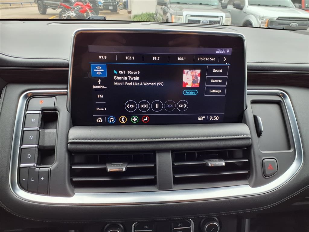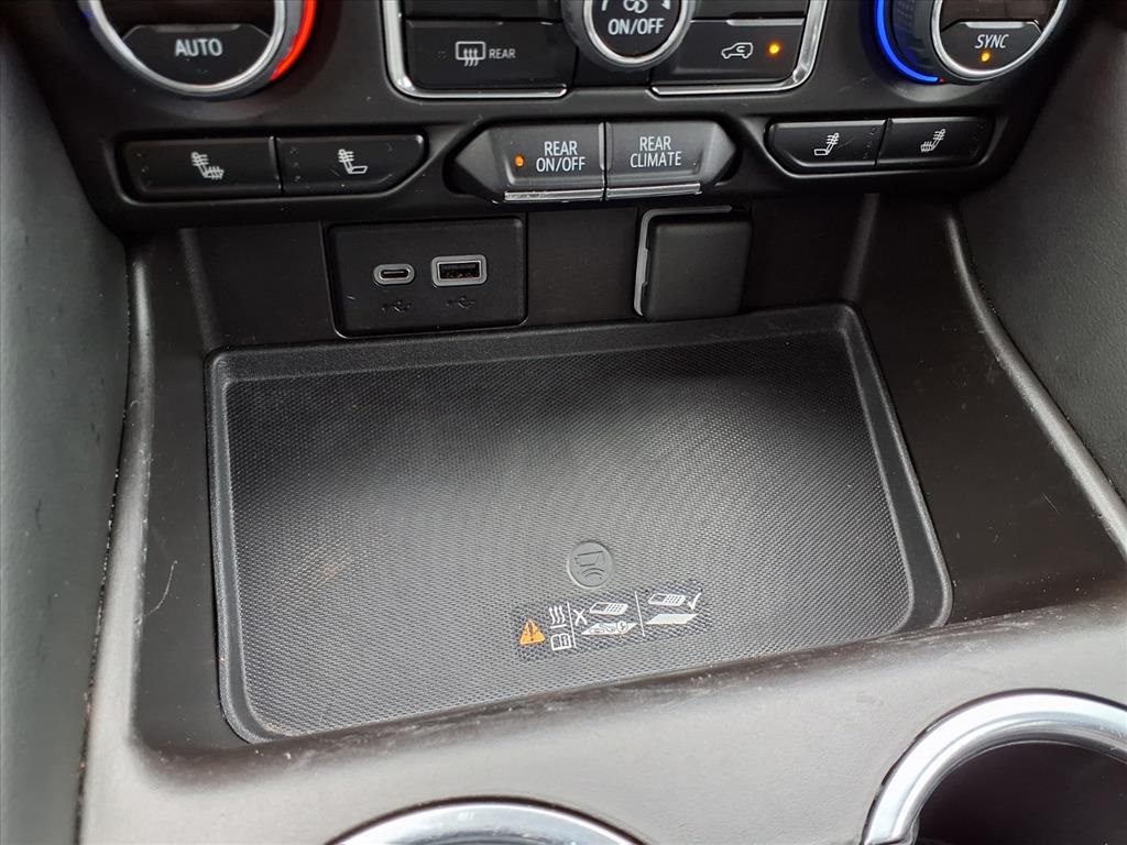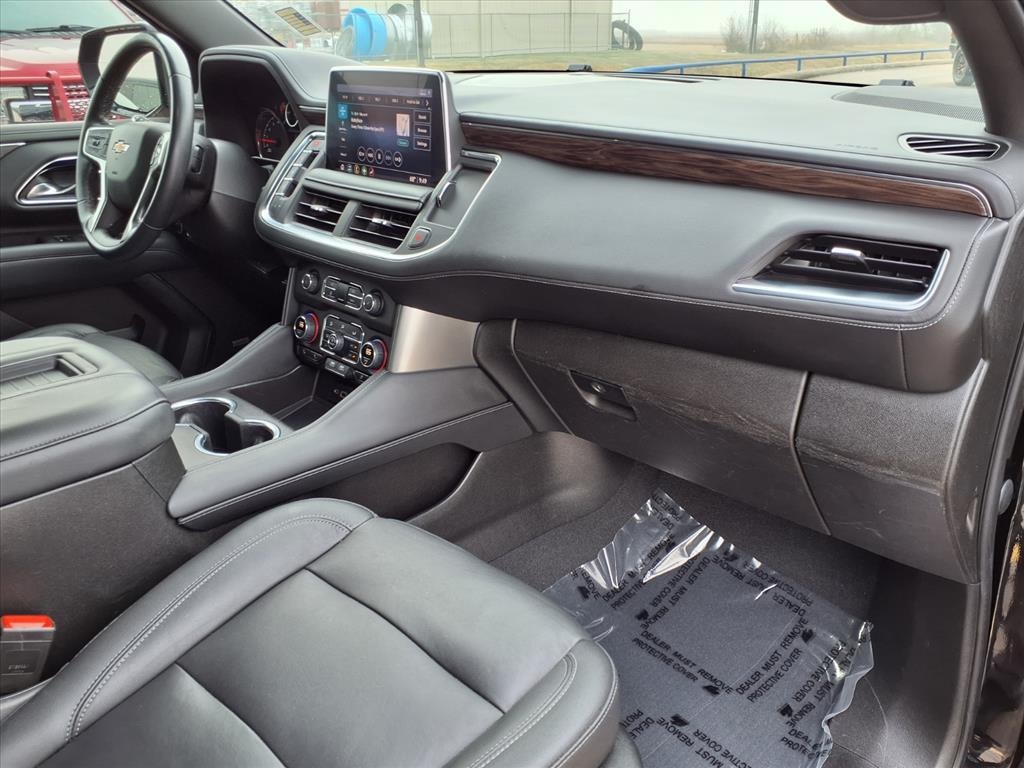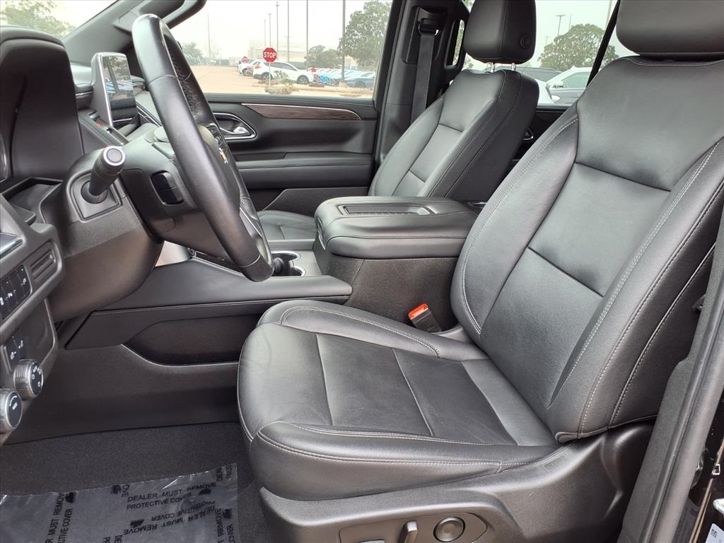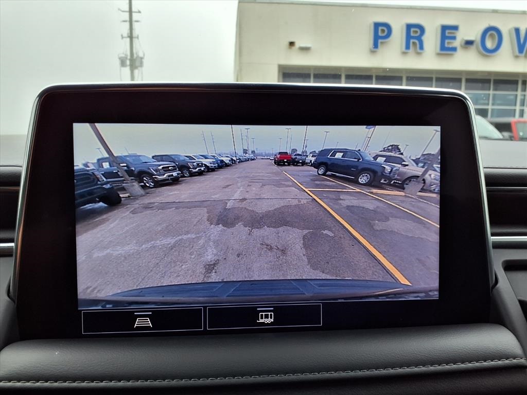 io, Infotainment Display, Leather-Wrapped Steering Wheel, LED Daytime Running Lamps, Memory Settings for Driver, Remote Start, SiriusXM Radio w/360L, and Universal Home Remote), Black Leather, 10-Way Power Driver & Passenger Seat Adjusters, 2nd Row Manual Bucket Seats, 3.23 Rear Axle Ratio, 3rd row seats: split-bench, 4-Wheel Disc Brakes, 9 Speakers, ABS brakes, Air Conditioning, Alloy wheels, AM/FM radio: SiriusXM with 360L, Apple CarPlay/Android Auto, Auto High-beam Headlights, Auto-dimming Rear-View mirror, Automatic temperature control, Bose 9-Speaker Stereo Audio System Feature, Brake assist, Bumpers: body-color, Compass, Delay-off headlights, Driver door bin, Driver vanity mirror, Dual front impact airbags, Dual front side impact airbags, Dual-Pane Power Panoramic Sunroof, Electronic Stability Control, Emergency communication system: OnStar and Chevrolet connected services capable, Four wheel independent suspension, Front anti-roll bar, Front Bucket Seats, Front Center Armrest, Front dual zone A/C, Front High-Back Reclining Bucket Seats, Front reading lights, Fully automatic headlights, Garage door transmitter, Heated door mirrors, Heated Driver & Front Passenger Seats, Heated front seats, Illuminated entry, Leather Seat Trim, Leather steering wheel, Low tire pressure warning, Memory seat, Not Equipped w/Automatic Stop/Start, Not Equipped w/Steering Column Lock, Occupant sensing airbag, Outside temperature display, Overhead airbag, Overhead console, Panic alarm, Passenger door bin, Passenger vanity mirror, Power door mirrors, Power driver seat, Power Liftgate, Power passenger seat, Power steering, Power windows, Premium audio system: Chevrolet Infotainment 3, Premium Smooth Ride Suspension, Radio: Chevrolet Infotainment 3 Plus System, Rain sensing wipers, Rear air conditioning, Rear anti-roll bar, Rear reading lights, Rear seat center armrest, Rear window defroster, Rear window wiper, Remote keyless entry, Roof rack: rails only, Security system, Speed control, Speed-sensing steering, Split folding rear seat, Spoiler, Steering wheel mounted audio controls, Tachometer, Telescoping steering wheel, Tilt steering wheel, Traction control, Trip computer, Variably intermittent wipers, Voltmeter, and Wheels: 18" x 8.5" Bright Silver Painted Aluminum.