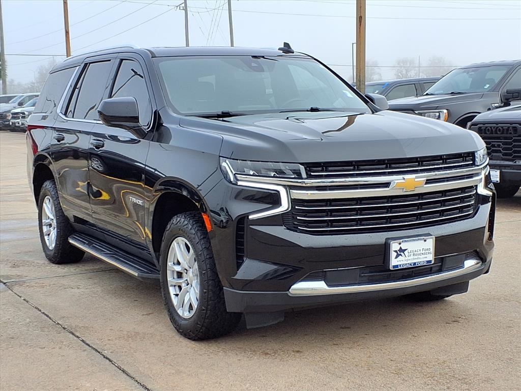 Recent Arrival! Clean CARFAX. Black 2021 Chevrolet Tahoe LT RWD 10-Speed Automatic with Overdrive EcoTec3 5.3L V8 Black Leather. License Plate Front Mounting Package, Preferred Equipment Group 1LT (1st & 2nd Row Color-Keyed Carpeted Floor Mats, 2 USB Data Ports, Auto-Dimming Inside Rear-View Mirror, Bright Front & Rear Door Sill Plates, Color-Keyed Carpeting Floor Covering, Driver & Front Outboard Passenger Airbags, Floor Console w/Storage Area, Hands-Free Rear Power Programmable Liftgate, HD Ra