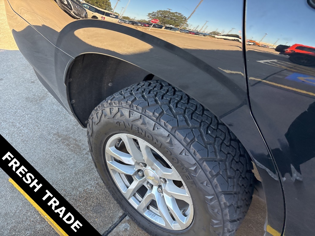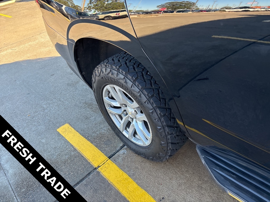 io, Infotainment Display, Leather-Wrapped Steering Wheel, LED Daytime Running Lamps, Memory Settings for Driver, Remote Start, SiriusXM Radio w/360L, and Universal Home Remote), Black Leather, 10-Way Power Driver & Passenger Seat Adjusters, 2nd Row Manual Bucket Seats, 3.23 Rear Axle Ratio, 3rd row seats: split-bench, 4-Wheel Disc Brakes, 9 Speakers, ABS brakes, Air Conditioning, Alloy wheels, AM/FM radio: SiriusXM with 360L, Apple CarPlay/Android Auto, Auto High-beam Headlights, Auto-dimming Rear-View mirror, Automatic temperature control, Bose 9-Speaker Stereo Audio System Feature, Brake assist, Bumpers: body-color, Compass, Delay-off headlights, Driver door bin, Driver vanity mirror, Dual front impact airbags, Dual front side impact airbags, Dual-Pane Power Panoramic Sunroof, Electronic Stability Control, Emergency communication system: OnStar and Chevrolet connected services capable, Four wheel independent suspension, Front anti-roll bar, Front Bucket Seats, Front Center Armrest, Front dual zone A/C, Front High-Back Reclining Bucket Seats, Front reading lights, Fully automatic headlights, Garage door transmitter, Heated door mirrors, Heated Driver & Front Passenger Seats, Heated front seats, Illuminated entry, Leather Seat Trim, Leather steering wheel, Low tire pressure warning, Memory seat, Not Equipped w/Automatic Stop/Start, Not Equipped w/Steering Column Lock, Occupant sensing airbag, Outside temperature display, Overhead airbag, Overhead console, Panic alarm, Passenger door bin, Passenger vanity mirror, Power door mirrors, Power driver seat, Power Liftgate, Power passenger seat, Power steering, Power windows, Premium audio system: Chevrolet Infotainment 3, Premium Smooth Ride Suspension, Radio: Chevrolet Infotainment 3 Plus System, Rain sensing wipers, Rear air conditioning, Rear anti-roll bar, Rear reading lights, Rear seat center armrest, Rear window defroster, Rear window wiper, Remote keyless entry, Roof rack: rails only, Security system, Speed control, Speed-sensing steering, Split folding rear seat, Spoiler, Steering wheel mounted audio controls, Tachometer, Telescoping steering wheel, Tilt steering wheel, Traction control, Trip computer, Variably intermittent wipers, Voltmeter, and Wheels: 18" x 8.5" Bright Silver Painted Aluminum.
