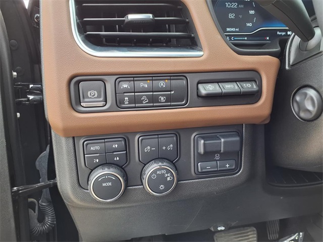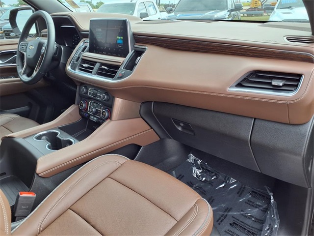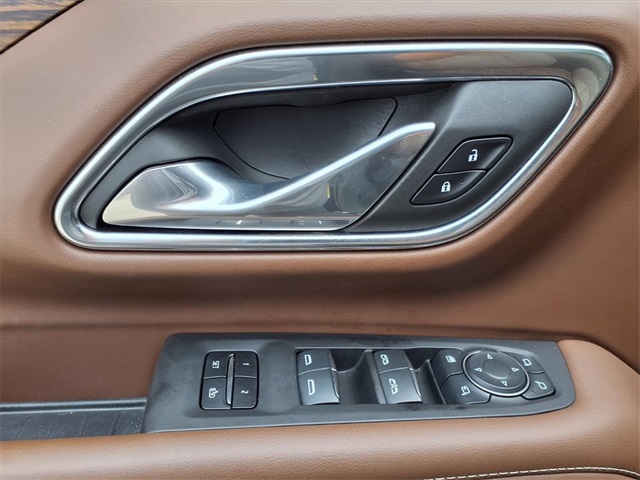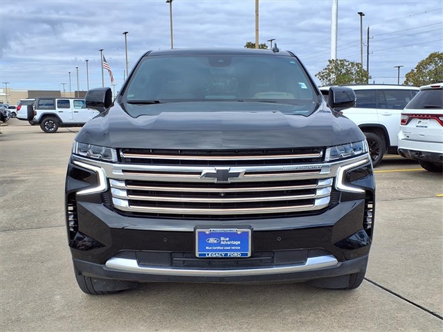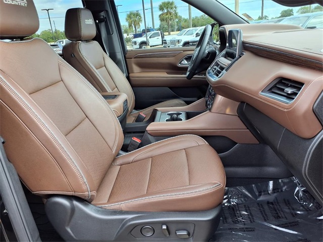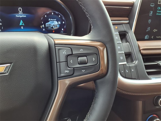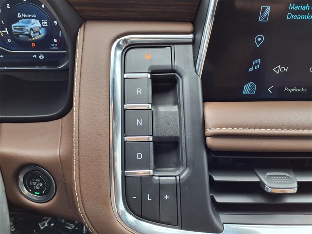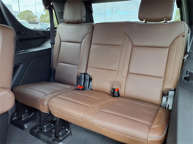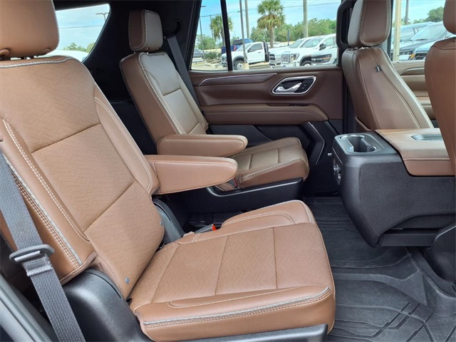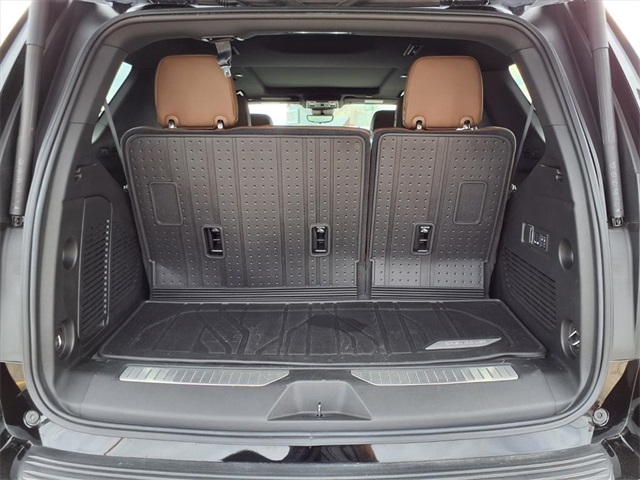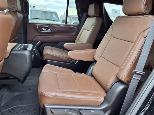 lor Head-Up Display, 1st & 2nd Row Color-Keyed Carpeted Floor Mats, 2-Speed Active Electronic AutoTrac Transfer Case, 3rd Row 60/40 Power-Folding Split-Bench Seat, Adaptive Cruise Control, Bose 10-Speaker Centerpoint Surround Audio Sys Ft, Bright Front & Rear Door Sill Plates, Chrome Door Handles w/Body-Color Strip, Color-Keyed Carpeting Floor Covering, Driver & Front Outboard Passenger Airbags, Dual Exhaust System, Enhanced Automatic Emergency Braking, Enhanced Driver Information Center, Floor Console, Hands-Free Rear Power Programmable Liftgate, HD Surround Vision, Heated 2nd Row Outboard Seats, Heated Steering Wheel, Hill Descent Control, Inside Rearview Auto-Dimming Rear Camera Mirror, Lane Change Alert w/Side Blind Zone Alert, LED Daytime Running Lamps, Memory Settings, Outside Heated Power-Adjustable Mirrors, Power Release 2nd Row Bucket Seats, Power Tilt & Telescopic Steering Column, Rear Camera Mirror Washer, Rear Cross Traffic Alert, Rear Pedestrian Alert, Remote Start, Safety Alert Seat, SiriusXM w/360L, Universal Home Remote, Wireless Charging, and Wrapped Steering Wheel), Premium Package (Dual-Pane Power Panoramic Sunroof and Power-Retractable Assist Steps), Ford Blue Advantage: Blue Certified Certified, 4WD, Jet Black/Mocha Leather, 10 Speakers, 12-Way Power Driver & Passenger Seat Adjusters, 1st & 2nd Rows Premium Floor Liners (LPO), 3.23 Rear Axle Ratio, 3rd row seats: split-bench, 4-Wheel Disc Brakes, ABS brakes, Adaptive suspension, Air Conditioning, Alloy wheels, AM/FM radio: SiriusXM with 360L, Apple CarPlay/Android Auto, Auto High-beam Headlights, Auto-dimming door mirrors, Auto-dimming Rear-View mirror, Auto-leveling suspension, Automatic temperature control, Brake assist, Bumpers: body-color, Compass, Delay-off headlights, Driver & Front Passenger Heated & Ventilated Seats, Driver door bin, Driver vanity mirror, Dual front impact airbags, Dual front side impact airbags, Electronic Stability Control, Emergency communication system: OnStar and Chevrolet connected services capable, Exterior Parking Camera Rear, Four wheel independent suspension, Front anti-roll bar, Front Bucket Seats, Front Center Armrest, Front dual zone A/C, Front High-Back Reclining Bucket Seats, Front reading lights, Fully automatic headlights, Garage door transmitter, Heads-Up Display, Heated door mirrors, Heated Driver & Front Passenger Seats, Heated front seats, Heated rear seats, Heated steering wheel, Illuminated entry, Infotainment Display, Low tire pressure warning, Magnetic Ride Control Suspension, Memory seat, Navigation System, Occupant sensing airbag, Outside temperature display, Overhead airbag, Overhead console, Panic alarm, Passenger door bin, Passenger vanity mirror, Perforated Leather Seat Trim, Power door mirrors, Power driver seat, Power Liftgate, Power passenger seat, Power steering, Power windows, Premium audio system: Chevrolet Infotainment 3 Premium, Radio: Chevrolet Infotainment 3 Premium System, Rain sensing wipers, Rear air conditioning, Rear anti-roll bar, Rear reading lights, Rear window defroster, Rear window wiper, Remote keyless entry, Roof rack: xxxxxx, Security system, Set of 4 Wheel Locks (LPO), Speed control, Speed-sensing steering, Split folding rear seat, Spoiler, Steering wheel memory, Steering wheel mounted audio controls, Tachometer, Telescoping steering wheel, Tilt steering wheel, Traction control, Trip computer, Turn signal indicator mirrors, Variably intermittent wipers, Ventilated front seats, Voltmeter