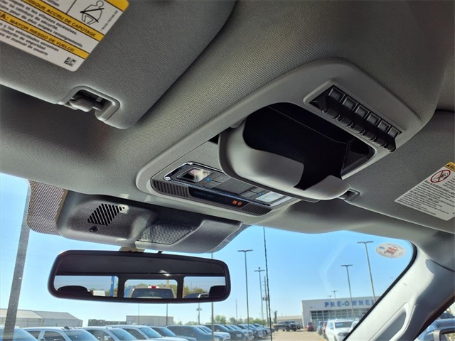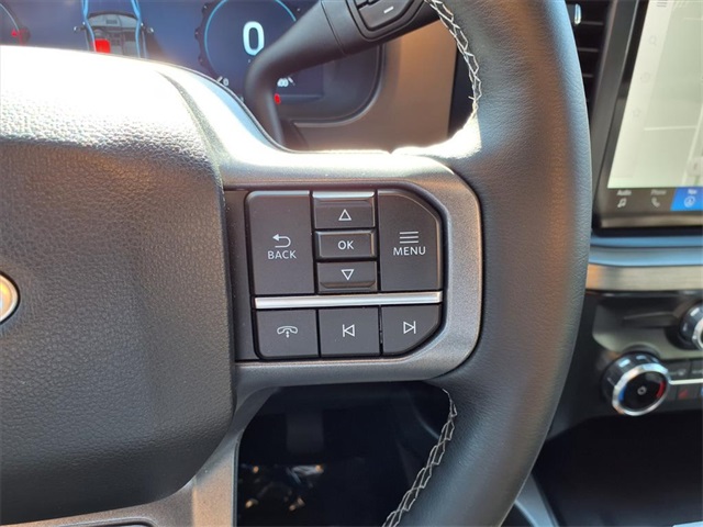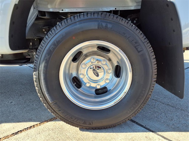 bags, Dual front side impact airbags, Dual rear wheels, Electronic Stability Control, Emergency communication system: SYNC 4 911 Assist, Engine Block Heater, Front anti-roll bar, Front License Plate Bracket, Front reading lights, Fully automatic headlights, Heated door mirrors, Illuminated entry, Low tire pressure warning, Outside temperature display, Overhead airbag, Overhead console, Panic alarm, Passenger vanity mirror, Power door mirrors, Power steering, Power windows, Rear anti-roll bar, Rear reading lights, Rear step bumper, Remote keyless entry, Security system, Speed control, Split folding rear seat, Steering wheel mounted audio controls, Tachometer, Telescoping steering wheel, Tilt steering wheel, Traction control, Trip computer, Turn signal indicator mirrors, Upfitter Switches (6), and Variably intermittent wipers.