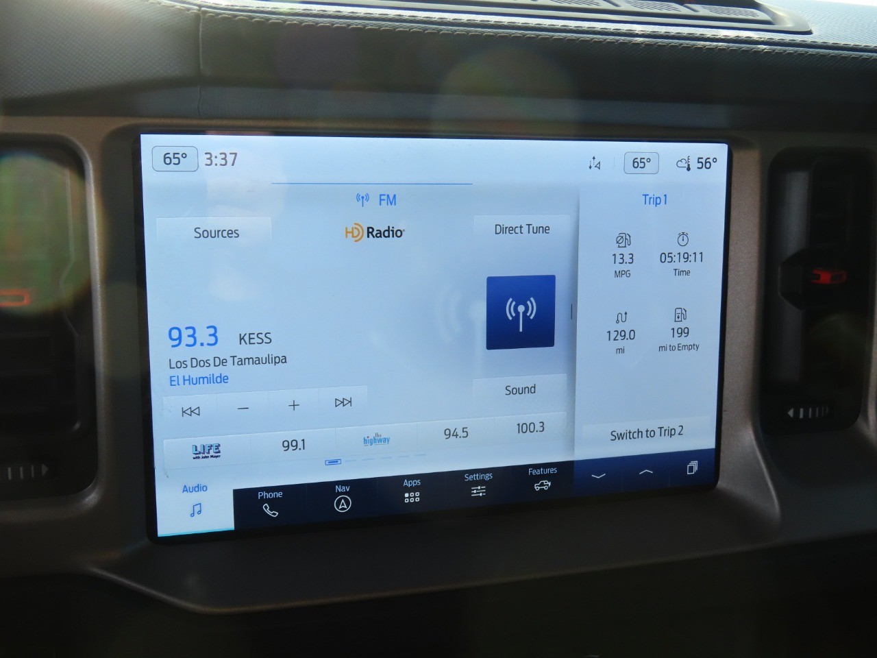 Does this deal seem too good to be true? It's just our everyday low prices! Buy with confidence, thanks to a CarFax Title history report! It has had only one previous owner. Some things are too hard to pass up. A perfect cold weather certified 2022 Bronco featuring heated seats. Get the right car at the right price. The rear view camera is perfect for backing into tight spots. The car has powered exterior mirrors. This vehicle includes: convenient keyless entry, security system, a cabin a