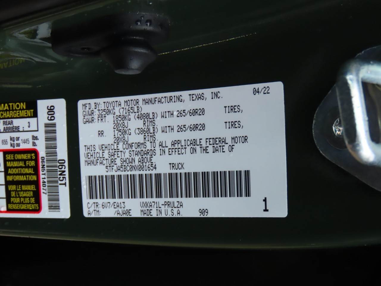 5TFJA5BC0NX001654Stock #