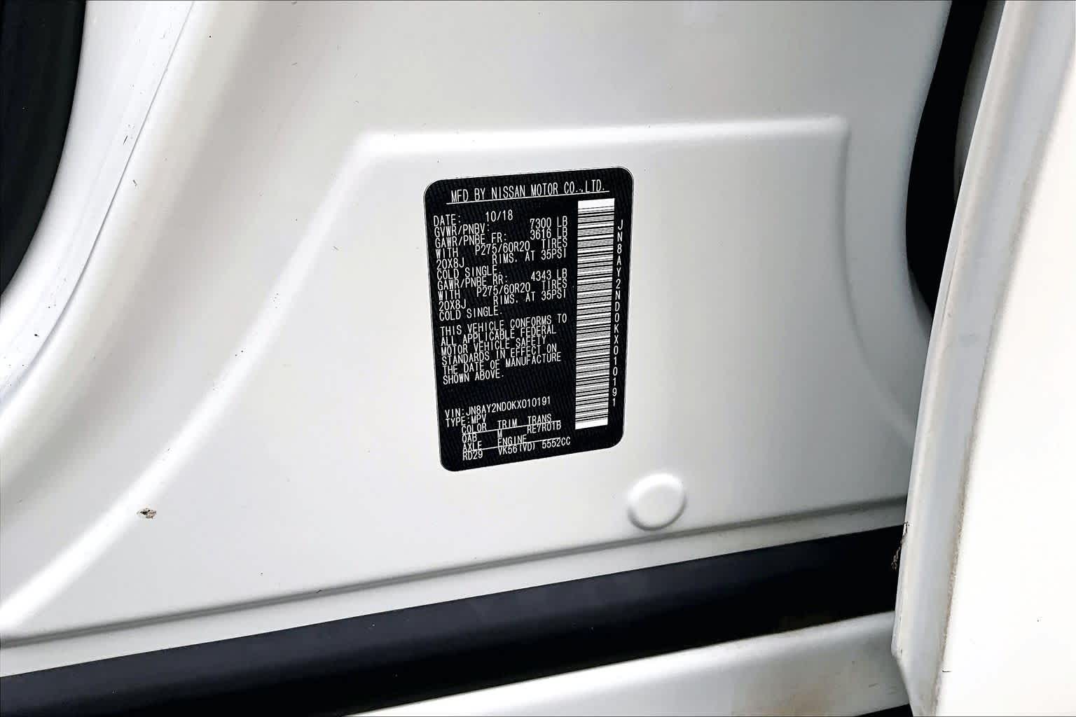 JN8AY2ND0KX010191Stock #