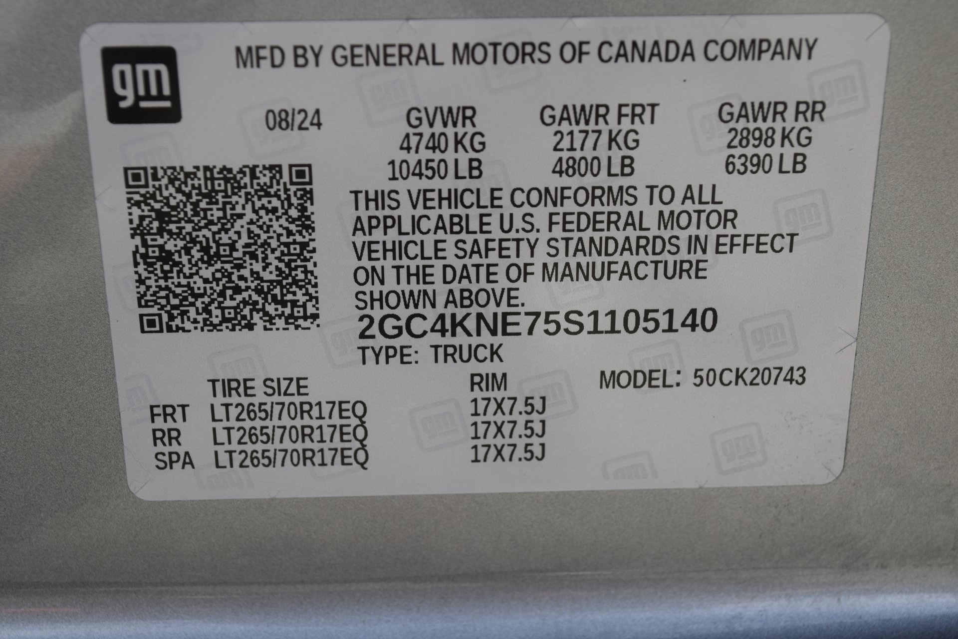 Sterling Gray Metallic 2025 Chevrolet Silverado 2500HD LT 4WD 10-Speed Automatic 6.6L V8 10-Way Power Driver Seat Adjuster with Lumbar, 120-Volt Bed Mounted Power Outlet, 120-Volt Interior Power Outlet, 17" Machined Aluminum Wheels, 170 Amp Alternator, 2-Speed Electronic Shift Tr