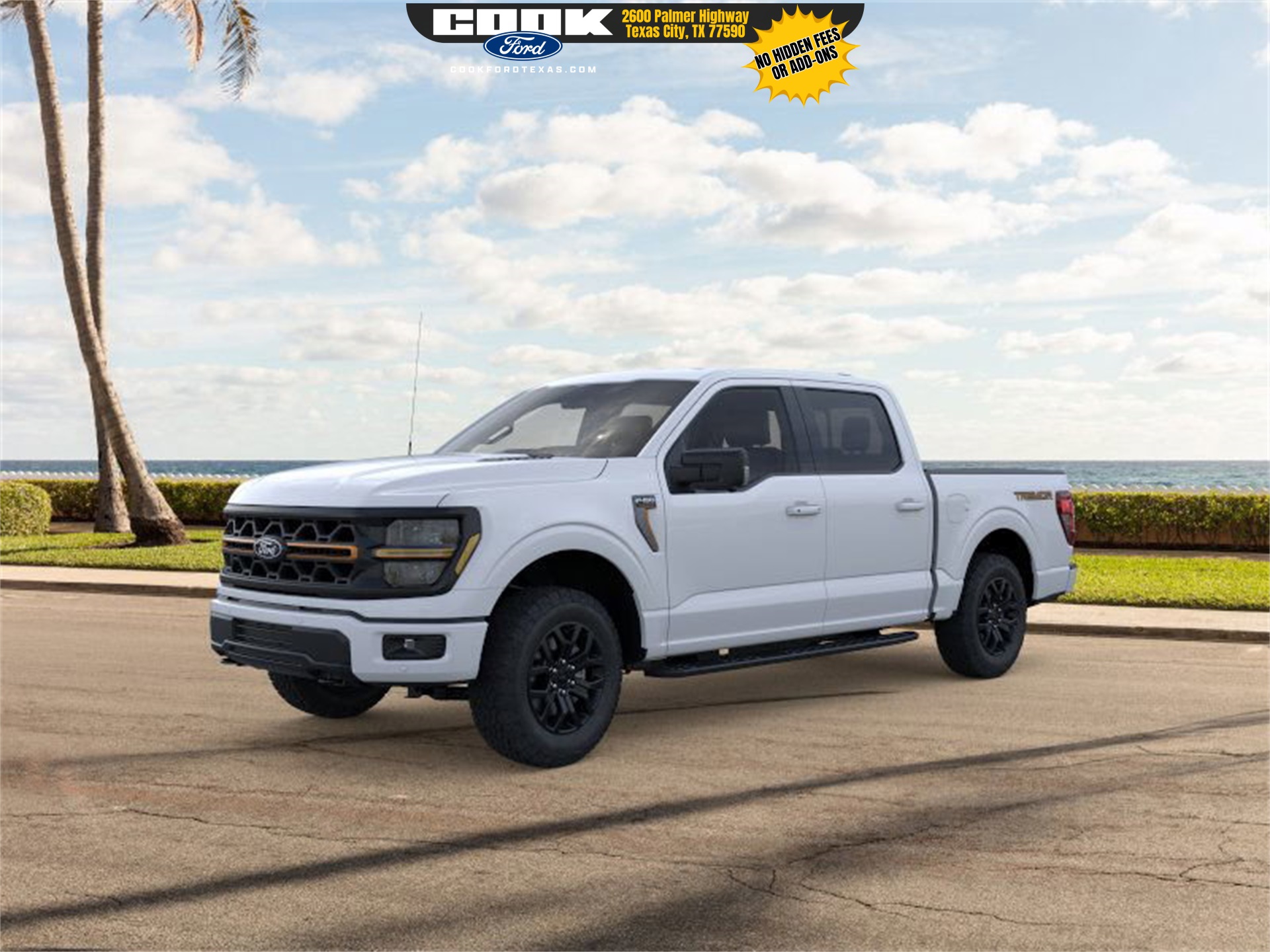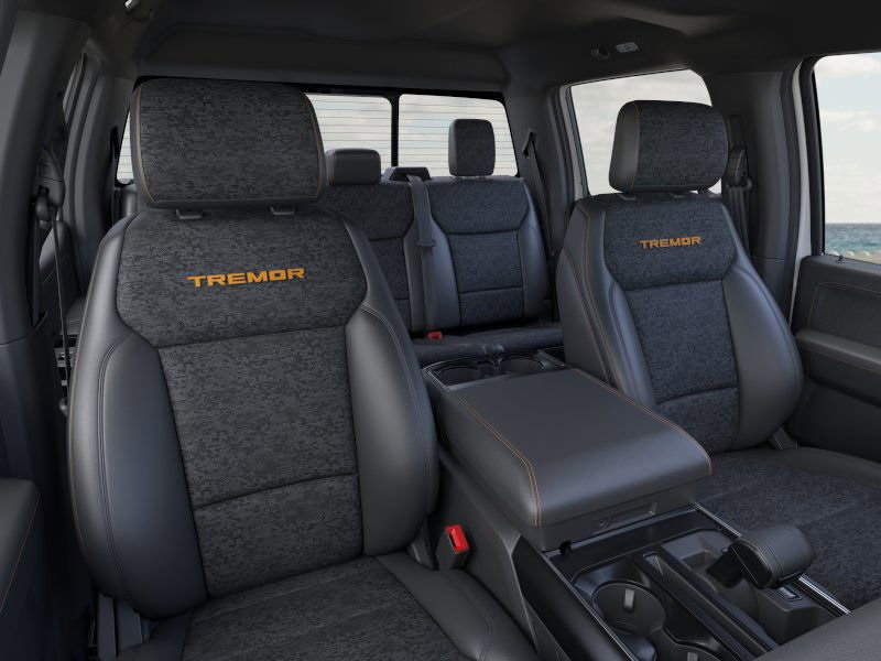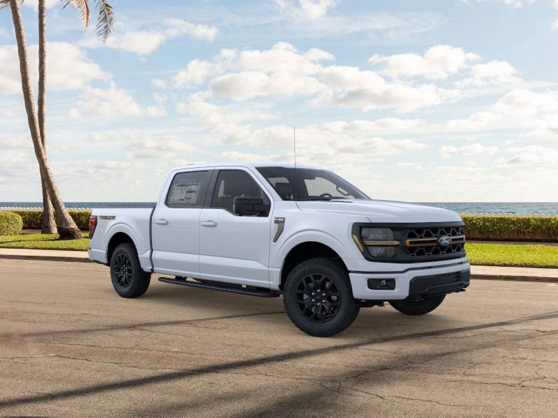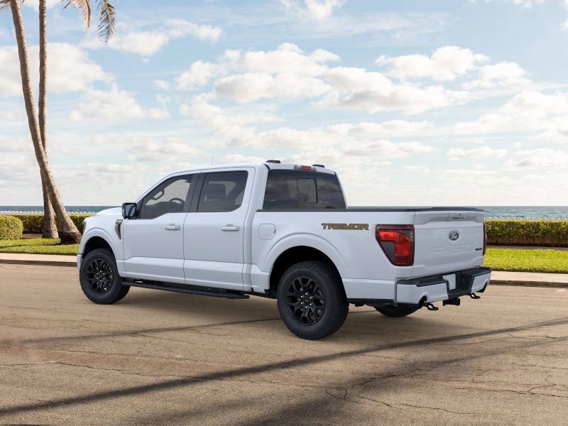 This 2025 Ford F-150 Tremor in Space White Metallic comes with the following features: 5.0L V8 10-Speed Automatic 4WD Bed Utility Package (4 Pickup Box Tie-Down Plates, LED Box Lighting, and Power Tailgate), GVWR: 7,100 lbs Payload Package, Mobile Office Package (Console Worksurface, Partitioned Lockable Rear Storage, and Wireless Charging), Tow/Haul Package (Integrated Trailer Brake Controller), 4-Wheel Disc Brakes,