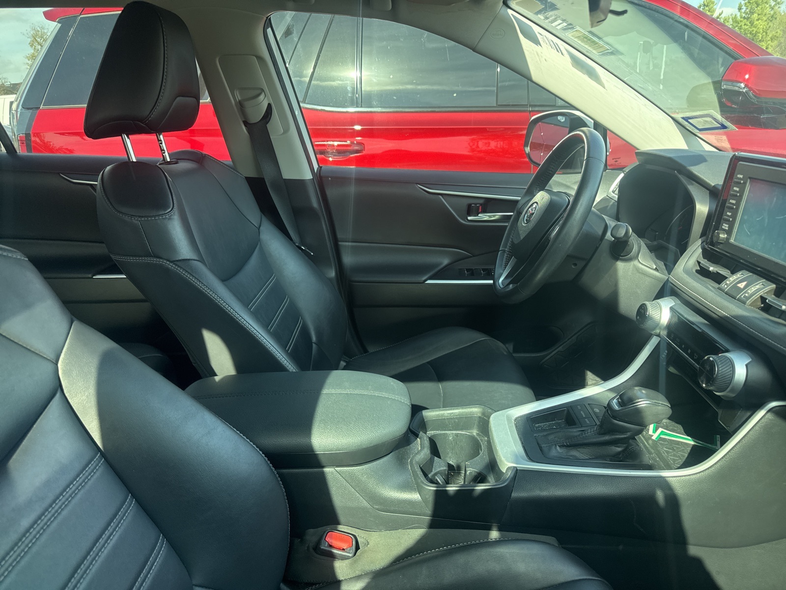rs: body-color, Delay-off headlights, Driver door bin, Driver vanity mirror, Dual front impact airbags, Dual front side impact airbags, Electronic Stability Control, Emergency communication system: Entune Safety Connect, Exterior Parking Camera Rear, Four wheel independent suspension, Front anti-roll bar, Front Bucket Seats, Front Center Armrest, Front Door Smart Key System w/Push Button Start, Front dual zone A/C, Front fog lights, Front reading lights, Fully automatic headlights, Heated door mirrors, Illuminated entry, Knee airbag, Leather Shift Knob, Low tire pressure warning, Occupant sensing airbag, Outside temperature display, Overhead airbag, Overhead console, Panic alarm, Passenger door bin, Passenger vanity mirror, Power door mirrors, Power driver seat, Power Liftgate, Power moonroof, Power steering, Power windows, Radio data system, Radio: Entune 3.0 Audio, Rear anti-roll bar, Rear seat center armrest, Rear window defroster, Rear window wiper, Remote keyless entry, Roof rack: rails only, SofTex Seat Trim, Speed control, Speed-sensing steering, Split folding rear seat, Spoiler, Steering wheel mounted audio controls, Tachometer, Telescoping steering wheel, Tilt steering wheel, Traction control, Trip computer, Turn signal indicator mirrors, Variably intermittent wipers, and Wheels: 19" x 7.5J Alloy. Recent Arrival! Odometer is 26175 miles below market average! 26/35 City/Highway MPG