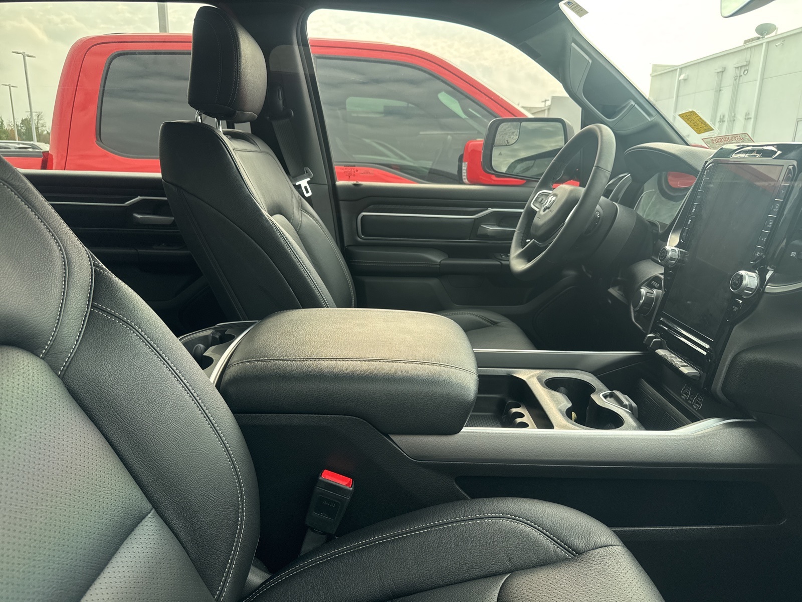 , Auto-Dimming Exterior Driver Mirror, Auto-Dimming Rear-View Mirror, Black Exterior Mirrors, Black Premium Power Mirrors, Cluster 7.0" TFT Color Display, Configurable Drive Mode, Connected Travel & Traffic Services, Connectivity - US/Canada, Convex Wide-Angle Exterior Mirror Insert, Exterior Mirrors Courtesy Lamps, Exterior Mirrors w/Heating Element, Exterior Mirrors w/Supplemental Signals, Glove Box Lamp, Google Android Auto, GPS Antenna Input, GPS Navigation, HD Radio, Heated Front Seats, Heated Steering Wheel, Integrated Voice Command w/Bluetooth, Leather Wrapped Steering Wheel, LED Dome Lamp w/On/Off Switch, LED Footwell Lighting, Media Hub w/2 Charge Only USBs, Overhead LED Lamps, Power 2-Way Driver Lumbar Adjust, Power Adjust 8-Way Driver Seat, Power Adjustable Pedals, Premium Overhead Console, Radio: Uconnect 5 Nav w/12.0" Display, Rear Power Sliding Window, Rear Window Defroster, Remote Tailgate Release, Security Alarm, SiriusXM w/360L, Steering Wheel Mounted Audio Controls, Sun Visors w/Illuminated Vanity Mirrors, Universal Garage Door Opener, and USB Host Flip), Night Edition (3 Rear Seat Head Restraints, 4 Way Front Headrests, Accent Color Door Handles, Accent Color Premium Power Mirrors, Accent Color Tailgate Handle, Anti-Spin Differential Rear Axle, Black Exterior Truck Badging, Black Headlamp Bezels, Black Interior Accents, Black Painted Exterior Mirrors Caps, Black Tail Lamp Bezels, Body Color Front Bumper, Body Color Rear Bumper w/Step Pads, Bucket Seats, Deluxe Cloth Bucket Seats, Front Seat Back Map Pockets, Full Length Floor Console, Grille Black Surround Black Mesh, Manual Adjust 4-Way Front Passenger Seat, RAM Grille Badge - Black, Rear 60/40 Folding Seat, Rear Center Armrest, Rear Wheelhouse Liners, and Wheels: 20" x 9.0" Aluminum Painted Clad), Quick Order Package 21R Lone Star (Regional) (Lone Star Badge), 3.21 Rear Axle Ratio, 4-Wheel Disc Brakes, 6 Speakers, ABS brakes, Air Conditioning, Alloy wheels, AM/FM radio, Apple CarPlay/Android Auto, Auto High-beam Headlights, Brake assist, Bumpers: chrome, Cloth Bench Seat, Cluster 12" TFT Color Display, Compass, Delay-off headlights, Driver door bin, Dual front impact airbags, Dual front side impact airbags, Electronic Stability Control, Exterior Parking Camera Rear, Front anti-roll bar, Front Center Armrest w/Storage, Front fog lights, Front License Plate Bracket, Front reading lights, Front wheel independent suspension, Fully automatic headlights, Heated door mirrors, Illuminated entry, Low tire pressure warning, Manual Folding Exterior Mirrors, MOPAR Front & Rear Rubber Floor Mats, Occupant sensing airbag, Outside temperature display, Overhead airbag, Overhead console, Panic alarm, Passenger door bin, Passenger vanity mirror, Power door mirrors, Power steering, Power windows, Radio data system, Radio: Uconnect 5 W w/8.4" Display, RAM Grille Badge - Chrome, Rear anti-roll bar, Rear seat center armrest, Rear step bumper, Remote keyless entry, Speed control, Split folding rear seat, Supplier Part Tracking (J-1), Tachometer, Telescoping steering wheel, Tilt steering wheel, Traction control, Trailer Brake Control, Trip computer, Variably intermittent wipers, Voltmeter, and Wheels: 18" x 8" Cast-Aluminum Painted. Recent Arrival!