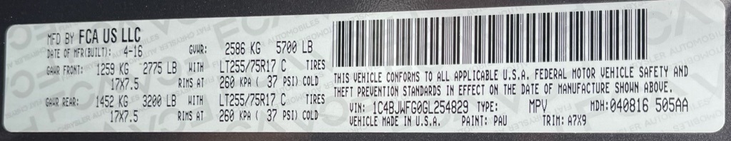 1C4BJWFG0GL254829Stock #