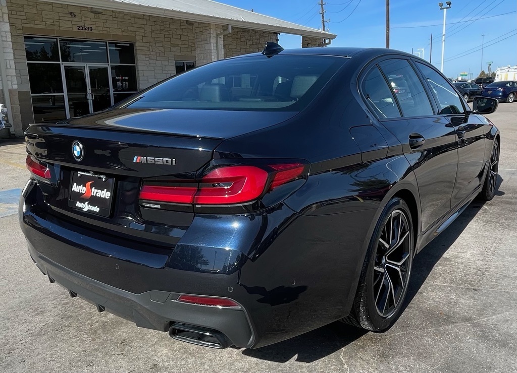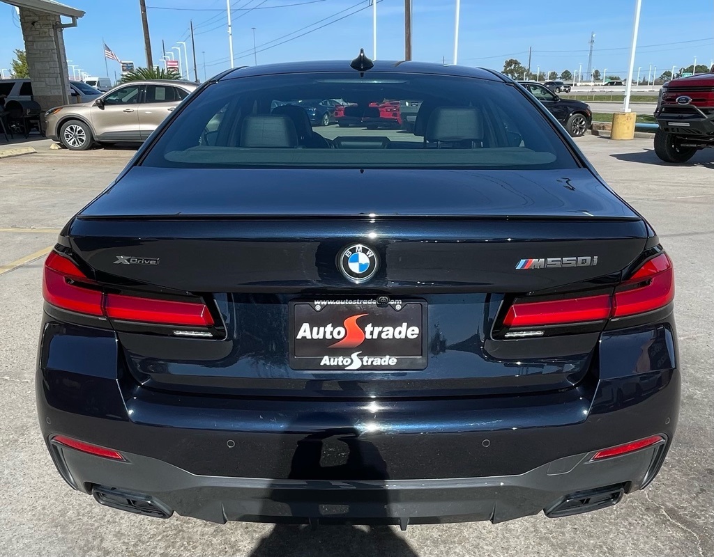 AUTOSTRADE is proud to present you with another True Market Priced Pre-Owned Vehicle. This 2022 BMW 5 Series M550i xDrive is loaded with the following Factory Options:Connected Package Pro, 16 Speakers, 4-Wheel Disc Brakes, ABS brakes, Adaptive suspension, Air Conditioning, Alloy wheels, AM/FM radio: SiriusXM with 360L, Apple CarPlay & Android Auto Compatibility, Auto High-beam Headlights, Auto tilt-away steering wheel, Auto-dimming door mirrors, Auto-dimming Rear-View mirror, Automatic temperature control, BMW Assist eCall, BMW TeleServices, Brake assist, Bumpers: body-color, ConnectedDrive Services, Dakota Leather Upholstery, Delay-off headlights, Driver door bin, Driver vanity mirror, Dual front impact airbags, Dual front side impact airbags, Electronic Stability Control, Emergency communication system: BMW Assist eCall, Exterior Parking Camera Rear, Fineline Ridge Wood Trim, Four wheel independent suspension, Front & Rear Heated Seats, Front anti-roll bar, Front Bucket Seats, Front Center Armrest, Front dual zone A/C, Front reading lights, Fully automatic headlights, Garage door transmitter, Gesture Control, harman/kardon Surround Sound System, harman/kardon® Speakers, Head-Up Display, Heated door mirrors, Heated Front Seats, Heated front seats, Heated Steering Wheel, Illuminated entry, Leather Shift Knob, Leather steering wheel, Live Cockpit Pro, Low tire pressure warning, Memory seat, Multi-Contour Seats, Navigation System, Occupant sensing airbag, Outside temperature display, Overhead airbag, Panic alarm, Passenger door bin, Passenger vanity mirror, Power adjustable front head restraints, Power door mirrors, Power driver seat, Power Front Seats, Power moonroof, Power passenger seat, Power steering, Power windows, Radio data system, Radio: AM/FM Audio System, Rain sensing wipers, Rear anti-roll bar, Rear reading lights, Rear seat center armrest, Rear window defroster, Remote keyless entry, Remote Services, Security system, SiriusXM w/360L, Speed control, Speed-sensing steering, Speed-Sensitive Wipers, Split folding rear seat, Spoiler, Sport steering wheel, Steering wheel memory, Steering wheel mounted audio controls, Tachometer, Telescoping steering wheel, Tilt steering wheel, Traction control, Trip computer, Turn signal indicator mirrors, Variably intermittent wipers, Wheels: 19" x 8" Fr & 19" x 9" Rr M Y-Spoke, Wheels: 19" x 8" Fr & 19" x 9" Rr M Y-Spoke Bi-Color, and Wireless Charging.