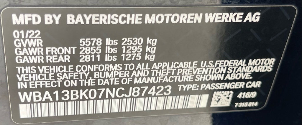 WBA13BK07NCJ87423Stock #