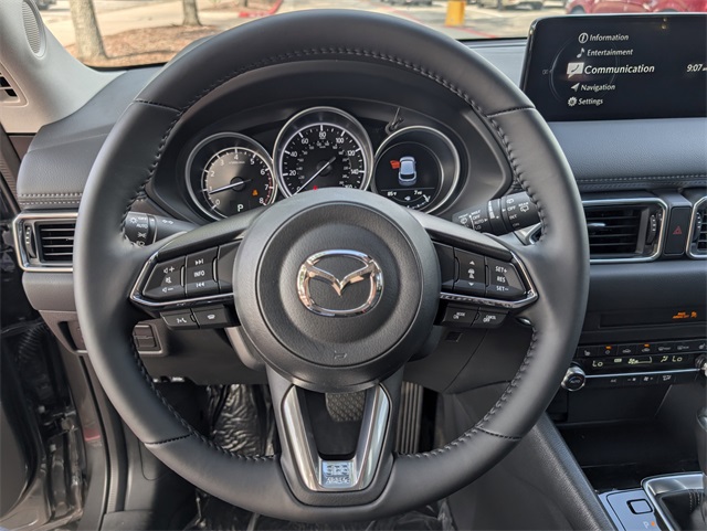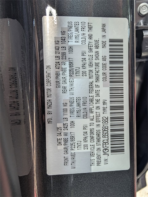 Delay-off headlights, Driver door bin, Driver vanity mirror, Dual front impact airbags, Dual front side impact airbags, E911 Automatic Emergency Notification, Electronic Stability Control, Emergency communication system: MAZDA CONNECT, Exterior Parking Camera Rear, First Aid Kit, Four wheel independent suspension, Front anti-roll bar, Front Bucket Seats, Front Center Armrest w/Storage, Front dual zone A/C, Front reading lights, Fully automatic headlights, Garage door transmitter: HomeLink, Heated Front Bucket Seats, Heated front seats, Illuminated entry, Infotainment System Voice Command, Leather Seat Trim, Leather Shift Knob, Leather steering wheel, Low tire pressure warning, Machine Gray Metallic Paint, Memory seat, Multifunction Commander Control, Occupant sensing airbag, Outside temperature display, Overhead airbag, Overhead console, Pandora, Panic alarm, Passenger door bin, Passenger vanity mirror, Power door mirrors, Power driver seat, Power Liftgate, Power moonroof, Power passenger seat, Power steering, Power windows, Radio Broadcast Data System Program Information, Radio data system, Radio: AM/FM/HD Audio System, Rain sensing wipers, Rear anti-roll bar, Rear reading lights, Rear seat center armrest, Rear window defroster, Rear window wiper, Remote keyless entry, Retractable Cargo Cover, SMS Text Msg Audio Delivery & Reply, Speed control, Speed-sensing steering, Split folding rear seat, Spoiler, Steering wheel mounted audio controls, Tachometer, Telescoping steering wheel, Tilt steering wheel, Traction control, Trip computer, Turn signal indicator mirrors, Variably intermittent wipers, and Wheels: 17" x 7J Aluminum Alloy. 2025 Machine Gray Metallic Mazda CX-5 2.5 S Preferred Package 4D Sport Utility AWD SKYACTIV® 2.5L 4-Cylinder DOHC 16V 6-Speed Automatic Pricing is subject to change without prior notice. Not all forms of payment are accepted. Residency restrictions apply. See dealer for complete details. Price includes: $2500 - Customer Cash. Exp. 02/02/2026