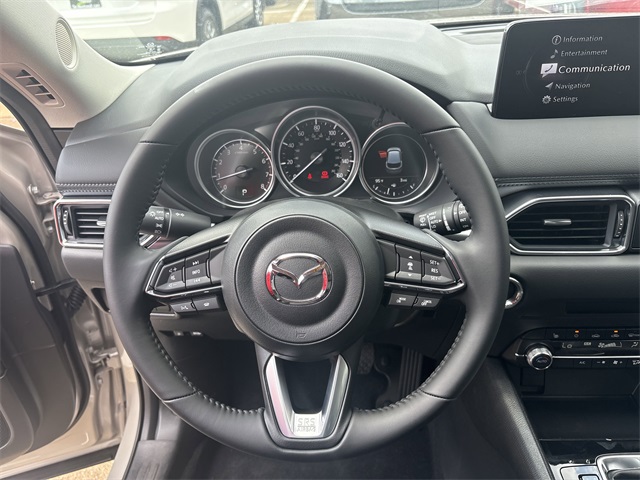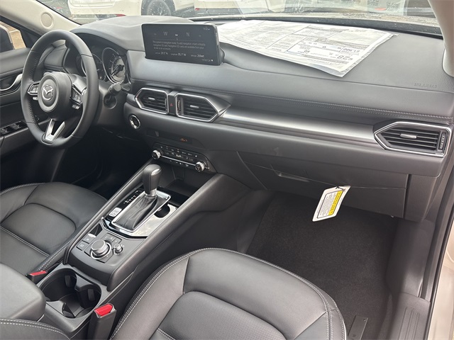 in, Driver vanity mirror, Dual front impact airbags, Dual front side impact airbags, E911 Automatic Emergency Notification, Electronic Stability Control, Emergency communication system: MAZDA CONNECT, Exterior Parking Camera Rear, Four wheel independent suspension, Front anti-roll bar, Front Bucket Seats, Front Center Armrest w/Storage, Front dual zone A/C, Front reading lights, Fully automatic headlights, Garage door transmitter: HomeLink, Heated Front Bucket Seats, Heated front seats, Illuminated entry, Infotainment System Voice Command, Leather Seat Trim, Leather Shift Knob, Leather steering wheel, Low tire pressure warning, Memory seat, Multifunction Commander Control, Occupant sensing airbag, Outside temperature display, Overhead airbag, Overhead console, Pandora, Panic alarm, Passenger door bin, Passenger vanity mirror, Power door mirrors, Power driver seat, Power Liftgate, Power moonroof, Power passenger seat, Power steering, Power windows, Radio Broadcast Data System Program Information, Radio data system, Radio: AM/FM/HD Audio System, Rain sensing wipers, Rear anti-roll bar, Rear reading lights, Rear seat center armrest, Rear window defroster, Rear window wiper, Remote keyless entry, SMS Text Msg Audio Delivery & Reply, Speed control, Speed-sensing steering, Split folding rear seat, Spoiler, Steering wheel mounted audio controls, Tachometer, Telescoping steering wheel, Tilt steering wheel, Traction control, Trip computer, Turn signal indicator mirrors, Variably intermittent wipers, and Wheels: 17" x 7J Aluminum Alloy. 2025 Platinum Quartz Metallic Mazda CX-5 2.5 S Preferred Package 4D Sport Utility AWD SKYACTIV® 2.5L 4-Cylinder DOHC 16V 6-Speed Automatic Pricing is subject to change without prior notice. Not all forms of payment are accepted. Residency restrictions apply. See dealer for complete details. Price includes: $2500 - Customer Cash. Exp. 02/02/2026