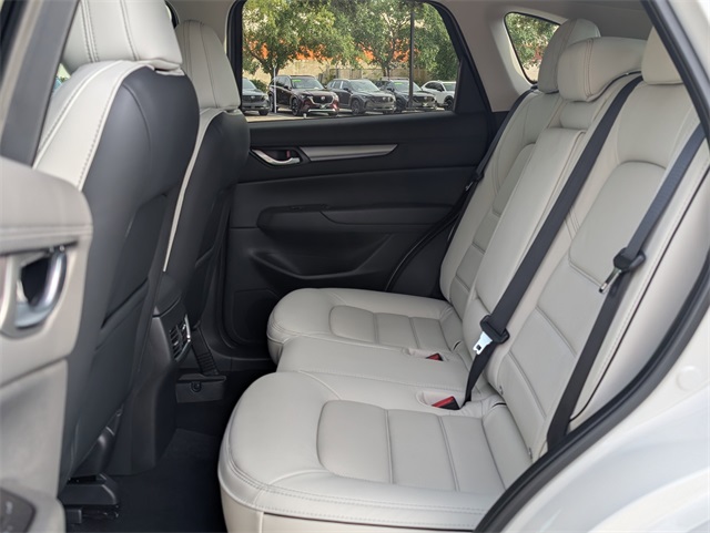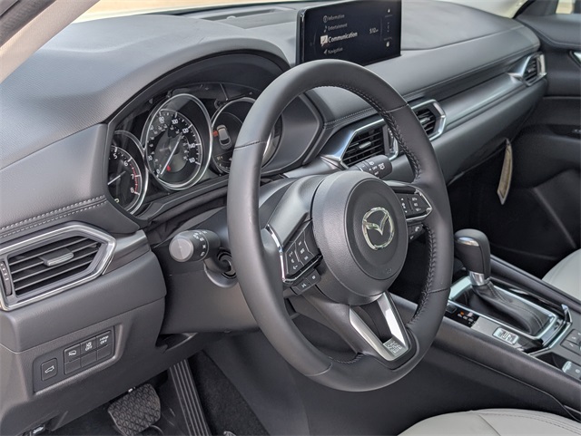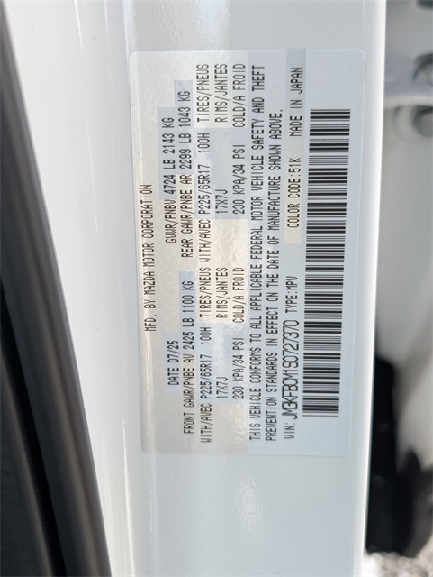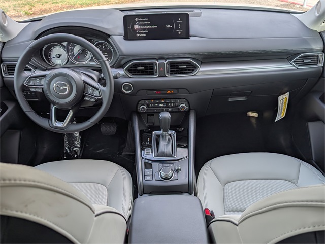 Delay-off headlights, Driver door bin, Driver vanity mirror, Dual front impact airbags, Dual front side impact airbags, E911 Automatic Emergency Notification, Electronic Stability Control, Emergency communication system: MAZDA CONNECT, Exterior Parking Camera Rear, First Aid Kit, Four wheel independent suspension, Front anti-roll bar, Front Bucket Seats, Front Center Armrest w/Storage, Front dual zone A/C, Front reading lights, Fully automatic headlights, Garage door transmitter: HomeLink, Heated Front Bucket Seats, Heated front seats, Illuminated entry, Infotainment System Voice Command, Leather Seat Trim, Leather Shift Knob, Leather steering wheel, Low tire pressure warning, Memory seat, Moon Roof Credit, Multifunction Commander Control, Occupant sensing airbag, Outside temperature display, Overhead airbag, Overhead console, Pandora, Panic alarm, Passenger door bin, Passenger vanity mirror, Power door mirrors, Power driver seat, Power Liftgate, Power moonroof, Power passenger seat, Power steering, Power windows, Radio Broadcast Data System Program Information, Radio data system, Radio: AM/FM/HD Audio System, Rain sensing wipers, Rear anti-roll bar, Rear reading lights, Rear seat center armrest, Rear window defroster, Rear window wiper, Remote keyless entry, Retractable Cargo Cover, Rhodium White Metallic Paint, SMS Text Msg Audio Delivery & Reply, Speed control, Speed-sensing steering, Split folding rear seat, Spoiler, Steering wheel mounted audio controls, Tachometer, Telescoping steering wheel, Tilt steering wheel, Traction control, Trip computer, Turn signal indicator mirrors, Variably intermittent wipers, and Wheels: 17" x 7J Aluminum Alloy. 2025 Rhodium White Metallic Mazda CX-5 2.5 S Preferred Package 4D Sport Utility AWD SKYACTIV® 2.5L 4-Cylinder DOHC 16V 6-Speed Automatic Pricing is subject to change without prior notice. Not all forms of payment are accepted. Residency restrictions apply. See dealer for complete details. Price includes: $2500 - Customer Cash. Exp. 02/02/2026