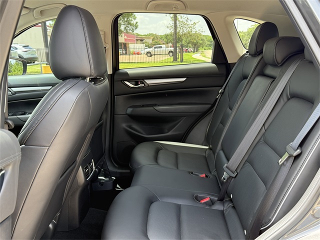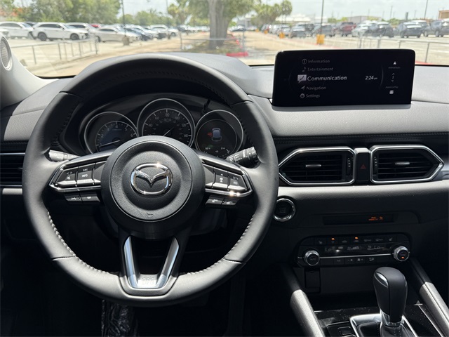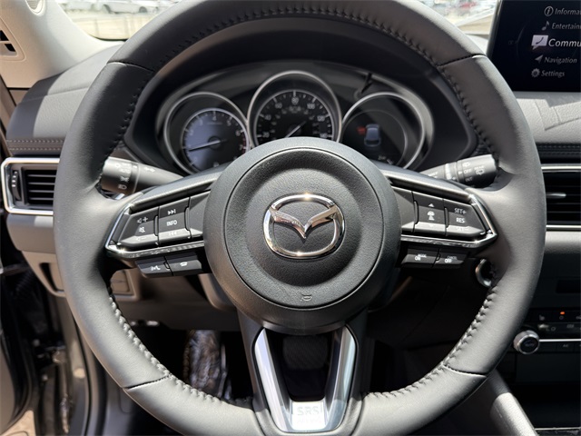 oor bin, Driver vanity mirror, Dual front impact airbags, Dual front side impact airbags, E911 Automatic Emergency Notification, Electronic Stability Control, Emergency communication system: MAZDA CONNECT, Exterior Parking Camera Rear, First Aid Kit, Four wheel independent suspension, Front anti-roll bar, Front Bucket Seats, Front Center Armrest w/Storage, Front dual zone A/C, Front reading lights, Fully automatic headlights, Heated Front Bucket Seats, Heated front seats, Illuminated entry, Infotainment System Voice Command, Leather Shift Knob, Leather steering wheel, Leatherette Seat Trim, Low tire pressure warning, Machine Gray Metallic Paint, Multifunction Commander Control, Occupant sensing airbag, Outside temperature display, Overhead airbag, Overhead console, Pandora, Panic alarm, Passenger door bin, Passenger vanity mirror, Power door mirrors, Power driver seat, Power steering, Power windows, Radio Broadcast Data System Program Information, Radio data system, Radio: AM/FM/HD Audio System, Rain sensing wipers, Rear anti-roll bar, Rear reading lights, Rear seat center armrest, Rear window defroster, Rear window wiper, Remote keyless entry, SMS Text Msg Audio Delivery & Reply, Speed control, Speed-sensing steering, Split folding rear seat, Spoiler, Steering wheel mounted audio controls, Tachometer, Telescoping steering wheel, Tilt steering wheel, Traction control, Trip computer, Turn signal indicator mirrors, Variably intermittent wipers, and Wheels: 17" x 7J Aluminum Alloy. 2025 Machine Gray Metallic Mazda CX-5 2.5 S Select Package 4D Sport Utility AWD SKYACTIV® 2.5L 4-Cylinder DOHC 16V 6-Speed Automatic Pricing is subject to change without prior notice. Not all forms of payment are accepted. Residency restrictions apply. See dealer for complete details. Price includes: $2500 - Customer Cash. Exp. 02/02/2026