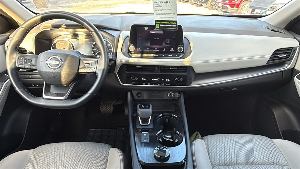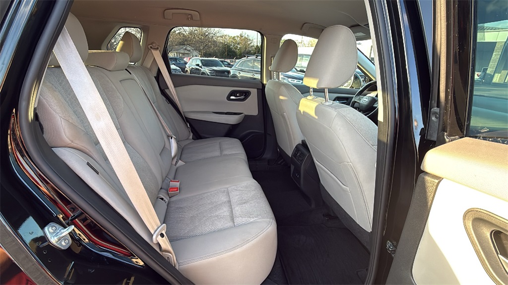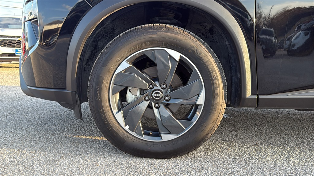 ABS brakes, Air Conditioning, Alloy wheels, AM/FM radio: SiriusXM, Android Auto and Apple CarPlay, Auto High-beam Headlights, Automatic temperature control, Brake assist, Bumpers: body-color, Cloth Seat Trim with Patterned Inserts, Delay-off headlights, Driver door bin, Driver vanity mirror, Dual front impact airbags, Dual front side impact airbags, Electronic Stability Control, Emergency communication system: NissanConnect Services, First Aid Kit, Floor Mats with 1-Piece Cargo Area Protector, Four wheel independent suspension, Front anti-roll bar, Front Bucket Seats, Front Bucket Seats with 8-Way Power Driver Seat, Front Center Armrest, Front dual zone A/C, Front reading lights, Fully automatic headlights, Heated door mirrors, Illuminated entry, Knee airbag, Low tire pressure warning, Occupant sensing airbag, Outside temperature display, Overhead airbag, Overhead console, Panic alarm, Passenger door bin, Passenger vanity mirror, Power door mirrors, Power driver seat, Power Liftgate, Power steering, Power windows, Radio data system, Radio: NissanConnect with 6 Speakers, Rear anti-roll bar, Rear seat center armrest, Rear side impact airbag, Rear window defroster, Rear window wiper, Remote keyless entry, Speed control, Speed-sensing steering, Speed-Sensitive Wipers, Split folding rear seat, Spoiler, Steering wheel mounted audio controls, Tachometer, Telescoping steering wheel, Tilt steering wheel, Traction control, Trip computer, Variably intermittent wipers, and Wheels: 18" Dark Painted Machine Finished Alloy. 2025 Nissan Rogue SV