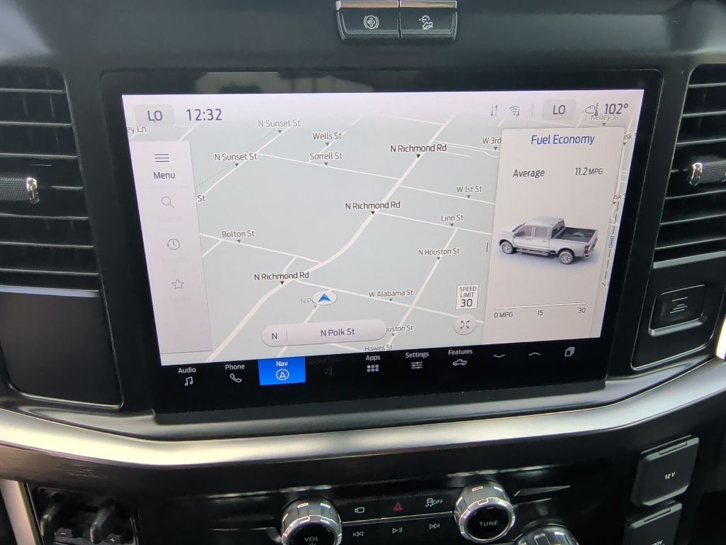 table pedals, Air Conditioning, Alloy wheels, AM/FM radio: SiriusXM with 360L, Auto High-beam Headlights, Auto-dimming Rear-View mirror, Automatic temperature control, BLIS w/Cross-Traffic Alert, Brake assist, Bumpers: chrome, Compass, Delay-off headlights, Driver door bin, Driver vanity mirror, Dual AGM 68 AH Battery, Dual front impact airbags, Dual front side impact airbags, Electronic Stability Control, Emergency communication system: SYNC 4 911 Assist, Flow-Through Console, Front ActiveX Trimmed 40/Console/40 Seats, Front anti-roll bar, Front Bucket Seats, Front Center Armrest, Front dual zone A/C, Front fog lights, Front License Plate Bracket, Front reading lights, Fully automatic headlights, Garage door transmitter, Heated door mirrors, Heated front seats, Heated rear seats, Heated steering wheel, Illuminated entry, Low tire pressure warning, Memory seat, Navigation system: Connected Navigation, Outside temperature display, Overhead airbag, Overhead console, Panic alarm, Passenger door bin, Passenger vanity mirror, Pedal memory, Power door mirrors, Power driver seat, Power passenger seat, Power steering, Power windows, Privacy Glass, Radio: B&O Sound System by Bang & Olufsen, Rain sensing wipers, Rear Parking Sensors, Rear reading lights, Rear seat center armrest, Rear step bumper, Rear window defroster, Remote keyless entry, Security system, SiriusXM w/360L, Speed control, Split folding rear seat, Steering wheel mounted audio controls, SYNC 4 w/Enhanced Voice Recognition, Tachometer, Tailgate Step & Handle, Telescoping steering wheel, Tilt steering wheel, Traction control, Trip computer, Turn signal indicator mirrors, Upfitter Switches (6), Variably intermittent wipers, Ventilated front seats, and Wheels: 18" Bright Machined & Carbonized Gray Alum.
